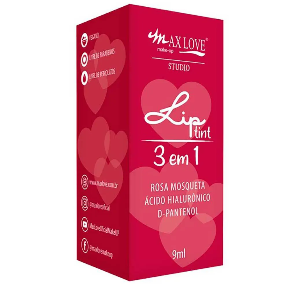 O Lip Tint 3 em 1 Max Love proporciona cor com aspecto natural aos lábios.