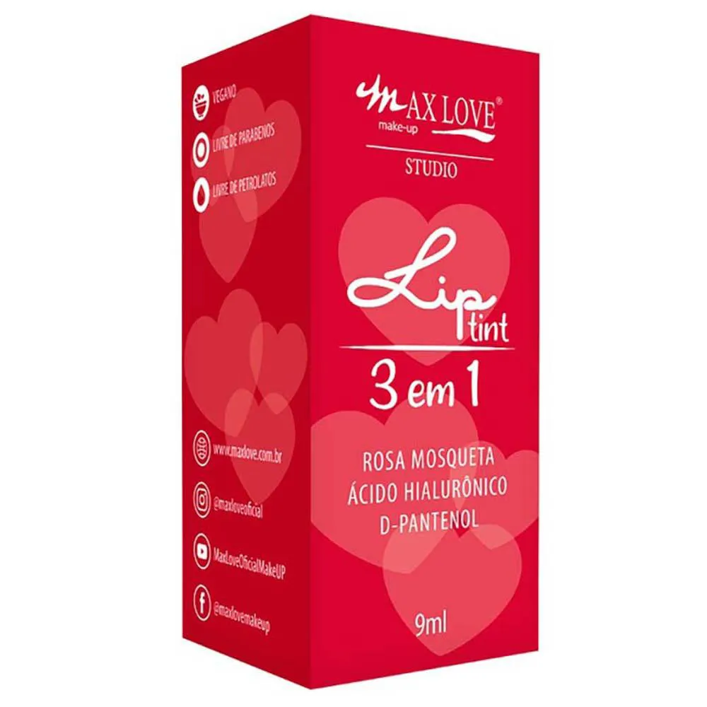 O Lip Tint 3 em 1 Max Love proporciona cor com aspecto natural aos lábios.