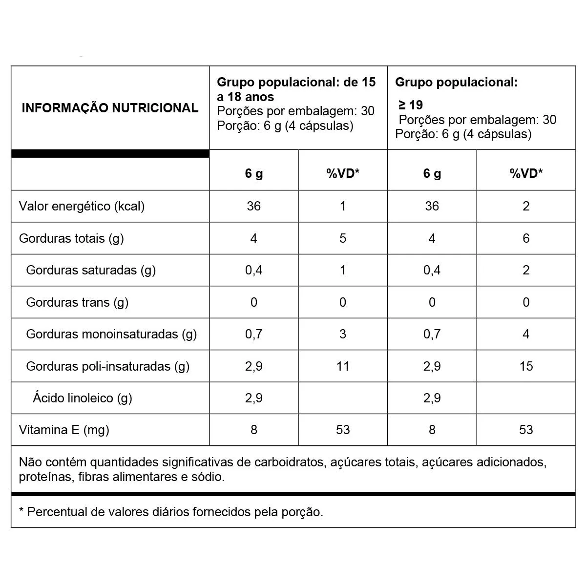 • Consumo recomendado para adultos e juvenis a partir de 15 anos de idade.