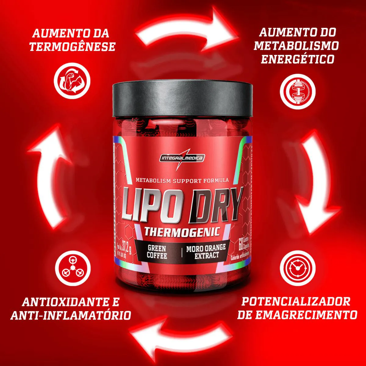 Seu maior aliado na queima de gordura! Lipo Dry da Integralmédica fornece 200 mg de cafeína por dose.