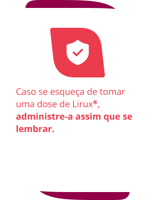 Lirux® deve ser armazenado na geladeira (entre 2 °C e 8 °C), protegido da luz e do calor. Não coloque o medicamento no compartimento do congelador, pois ele não deve ser congelado.