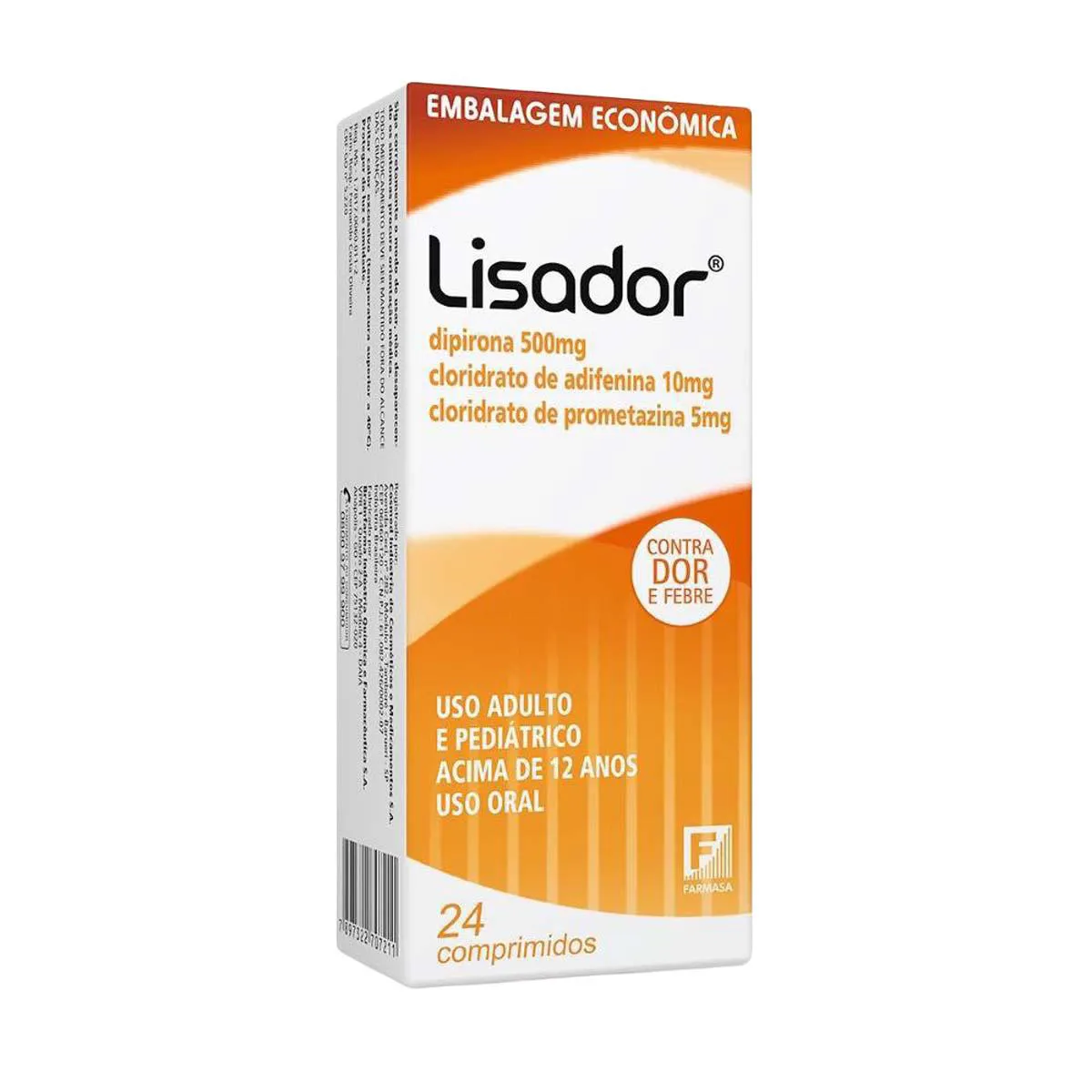 Lisador Dipirona 500mg + Adifenina 10mg + Prometazina 5mg 24 comprimidos