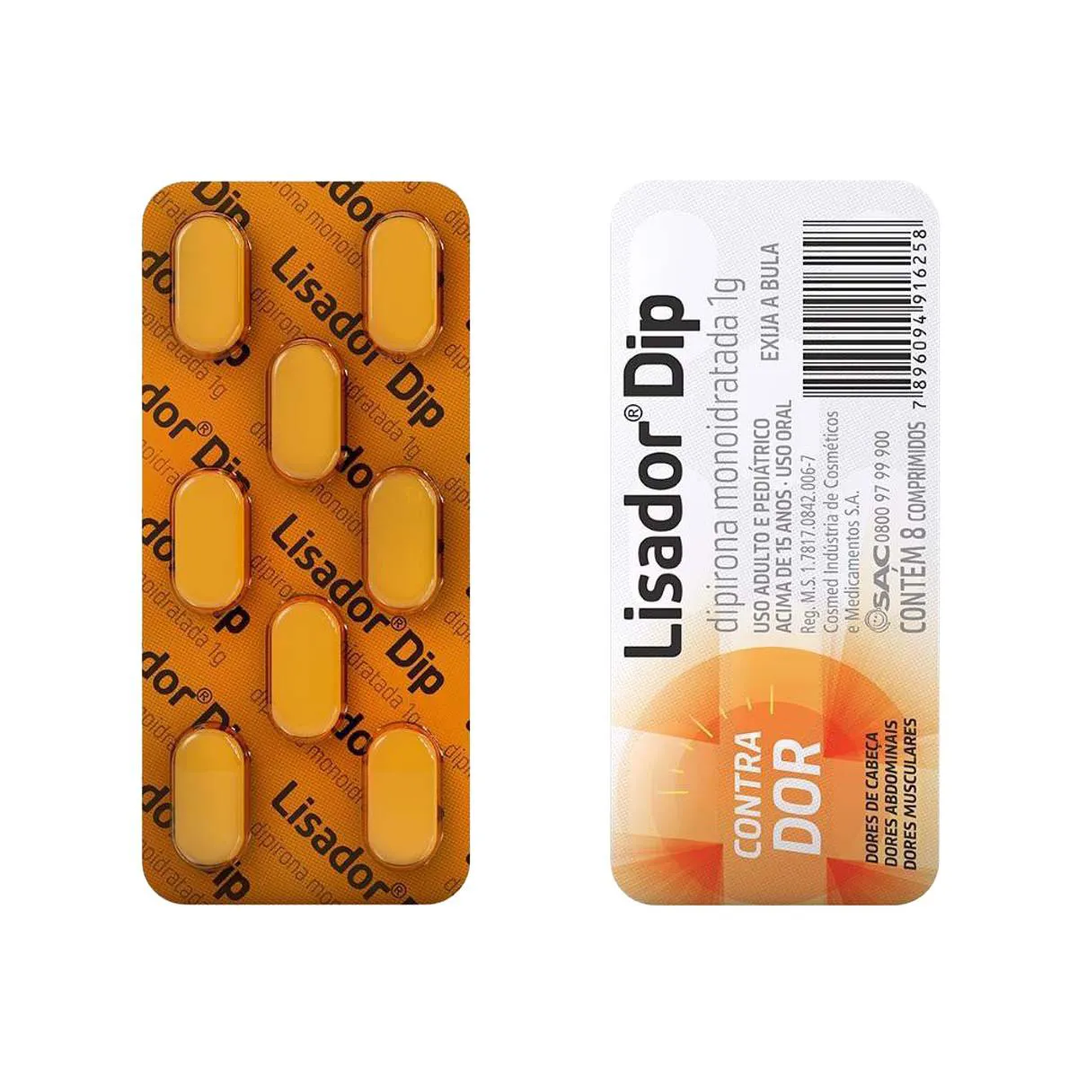 Modo de usar: Lisador Dip comprimido 1g: adultos e adolescentes acima de 15 anos: ½ a 1 comprimido até 4 vezes ao dia. Se o efeito de uma única dose for insuficiente ou após o efeito analgésico ter diminuído, a dose pode ser repetida respeitando-se o modo de usar e a dose máxima diária, conforme descrito acima. O tratamento pode ser interrompido a qualquer instante sem provocar danos ao paciente, inerentes à retirada da medicação. Não há estudos dos efeitos de Lisador Dip comprimido administrado por vias não recomendadas. Portanto, por segurança e para garantir a eficácia deste medicamento, a administração deve ser somente por via oral.