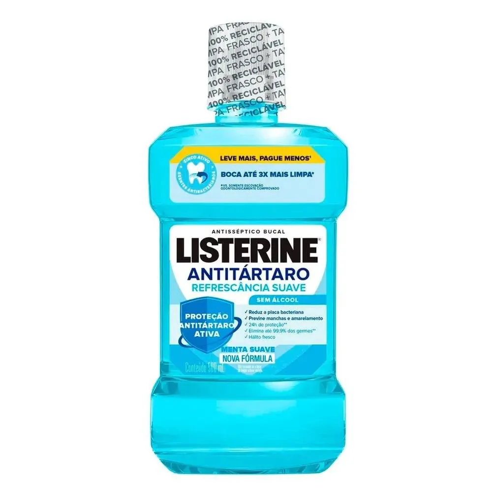 O Listerine Enxaguante Bucal 500ml Tartar Control Zero é um produto de higiene bucal que ajuda a prevenir a formação de tártaro e a manter a saúde das gengivas. Sua fórmula com flúor e agentes antibacterianos proporciona uma proteção duradoura contra a placa bacteriana e o mau hálito. Benefícios: - Previne a formação de tártaro: Ajuda a prevenir a formação de tártaro e a manter a saúde das gengivas. - Protege contra a placa bacteriana: Reduz a placa bacteriana e o mau hálito. - Fortalece os dentes: Contém flúor para fortalecer os dentes e prevenir a cárie. - Zero álcool e açúcar: Não contém álcool nem açúcar, tornando-o uma opção saudável para o uso diário. Modo de uso: 1. Enxague a boca com 20ml do produto por 30 segundos. 2. Cuspa o líquido e não engula. 3. Não enxágue a boca com água após o uso. 4. Use duas vezes ao dia, após a escagem dos dentes. Composição: Aqua, Glycerin, Alcohol Denat., Sorbitol, Poloxamer 407, Sodium Lauryl Sulfate, Eucalyptol, Methyl Salicylate, Thymol, Menthol, Sodium Fluoride, Sodium Saccharin, Sodium Benzoate, CI 19140, CI 42090. Conteúdo: 500ml Precauções: - Uso externo apenas. - Não engula. - Mantenha fora do alcance de crianças. - Se ocorrer irritação, interrompa o uso e consulte um dentista.