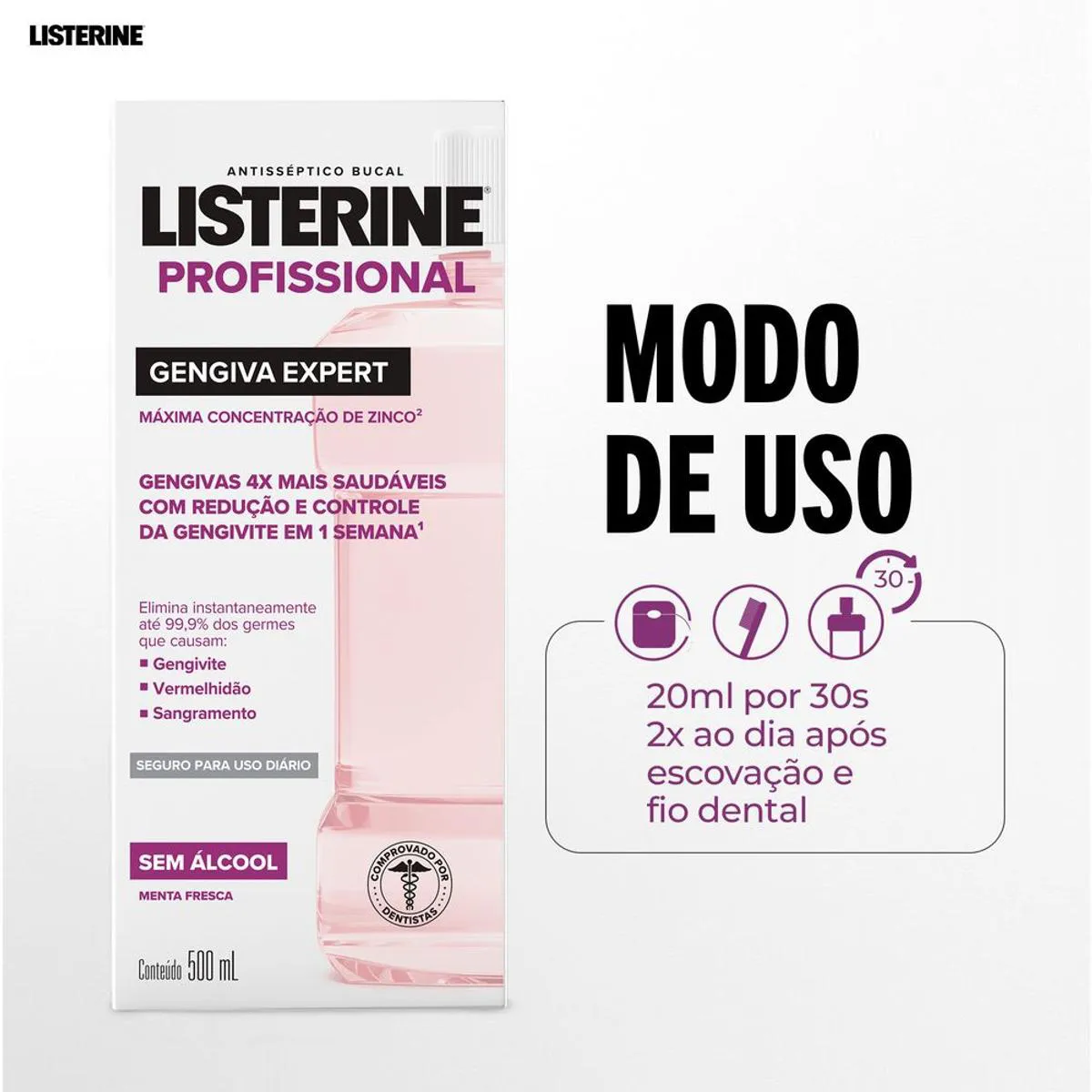 Enxaguante Bucal Listerine Profissional Gengiva Expert Sem Álcool 500ml