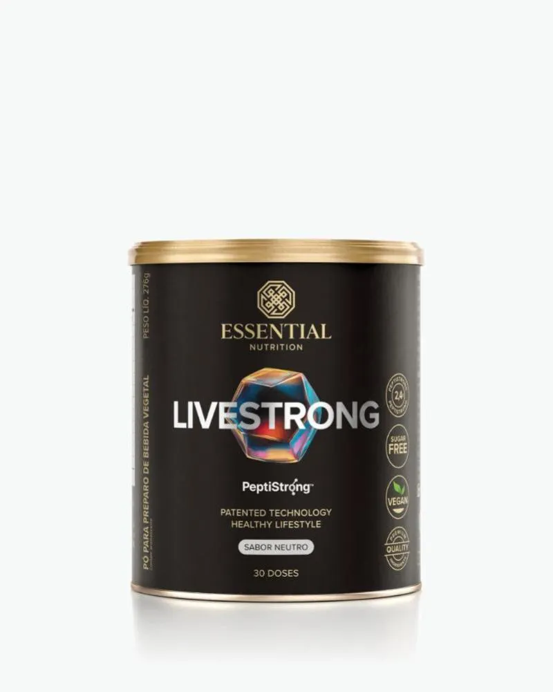 LiveStrong 2,4 g PeptiStrong™ Essential Neutro – 237 g Bebida proteica versátil e sem sabor, perfeita para enriquecer receitas ou misturar com outros suplementos. Sua fórmula une fibra solúvel à exclusiva proteína hidrolisada da fava PeptiStrong™, selecionada com apoio de inteligência artificial para máxima qualidade. ✔ 2,4 g de PeptiStrong™ por porção – proteína vegetal inovadora e de alta biodisponibilidade