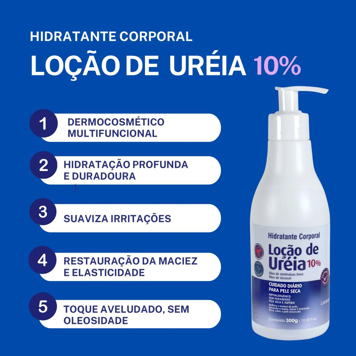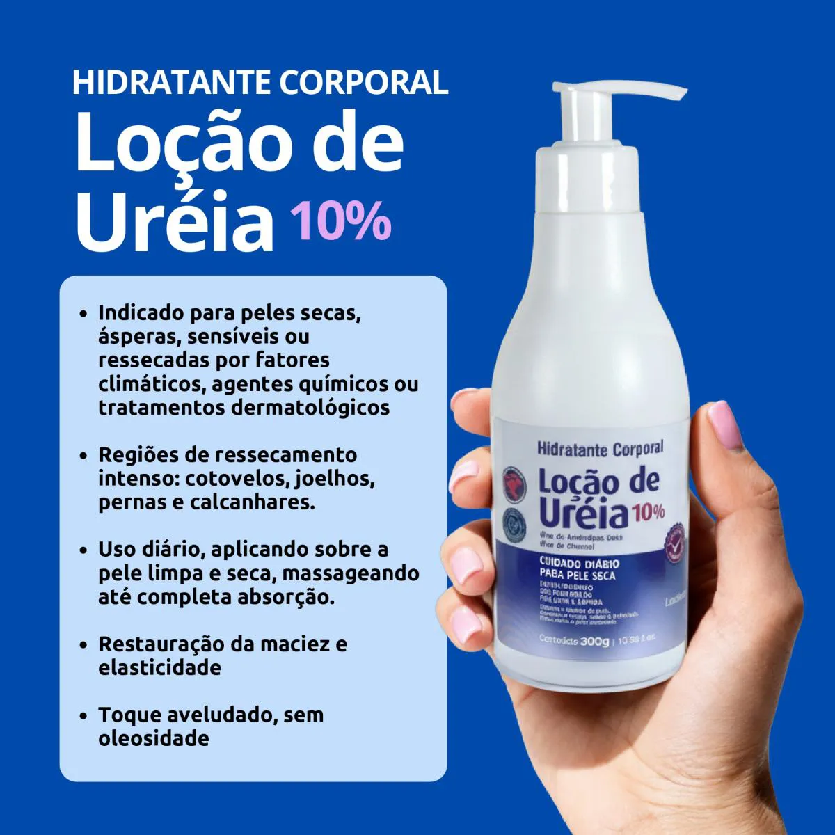 Além de promover hidratação profunda, a loção de ureia tem ação hidratante prolongada, mantendo a pele macia e confortável ao longo do dia. Ela também ajuda a restaurar a barreira de proteção da pele, prevenindo o ressecamento e a descamação.