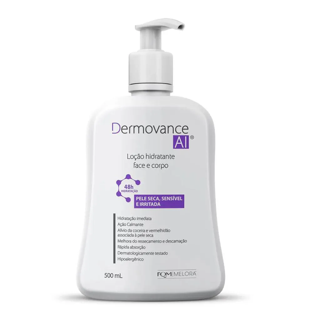 Loção hidratante Facial e Corporal Dermovance AI 500mlTransforme o cuidado da sua pele com a Dermovance AI Loção Hidratante, desenvolvida para proporcionar alívio intenso e hidratação profunda a peles secas, sensíveis e irritadas.Benefícios: