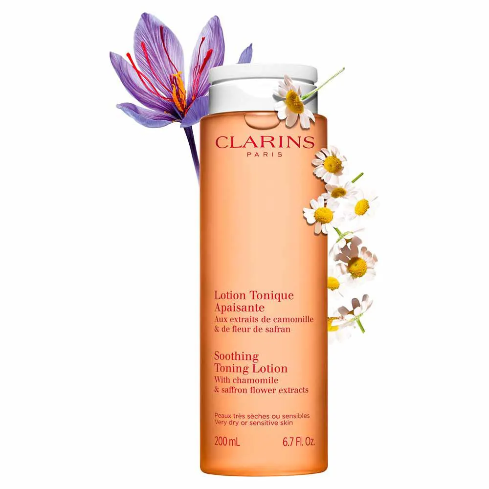A Loção Tônica Calmante Clarins Soothing Toning é um tônico facial à base de plantas, desenvolvido sem corantes e sem álcool, com extratos de Coneflower Roxo e Camomila Orgânica. Sua função é tonificar, hidratar e acalmar a pele, removendo impurezas e proporcionando conforto, especialmente para peles muito secas e sensíveis.