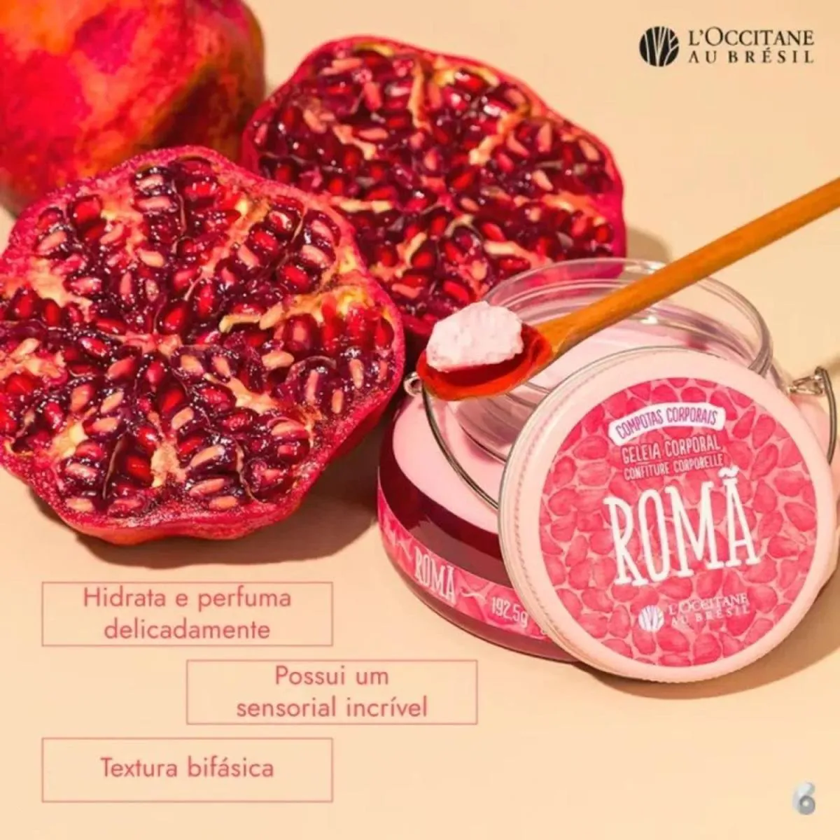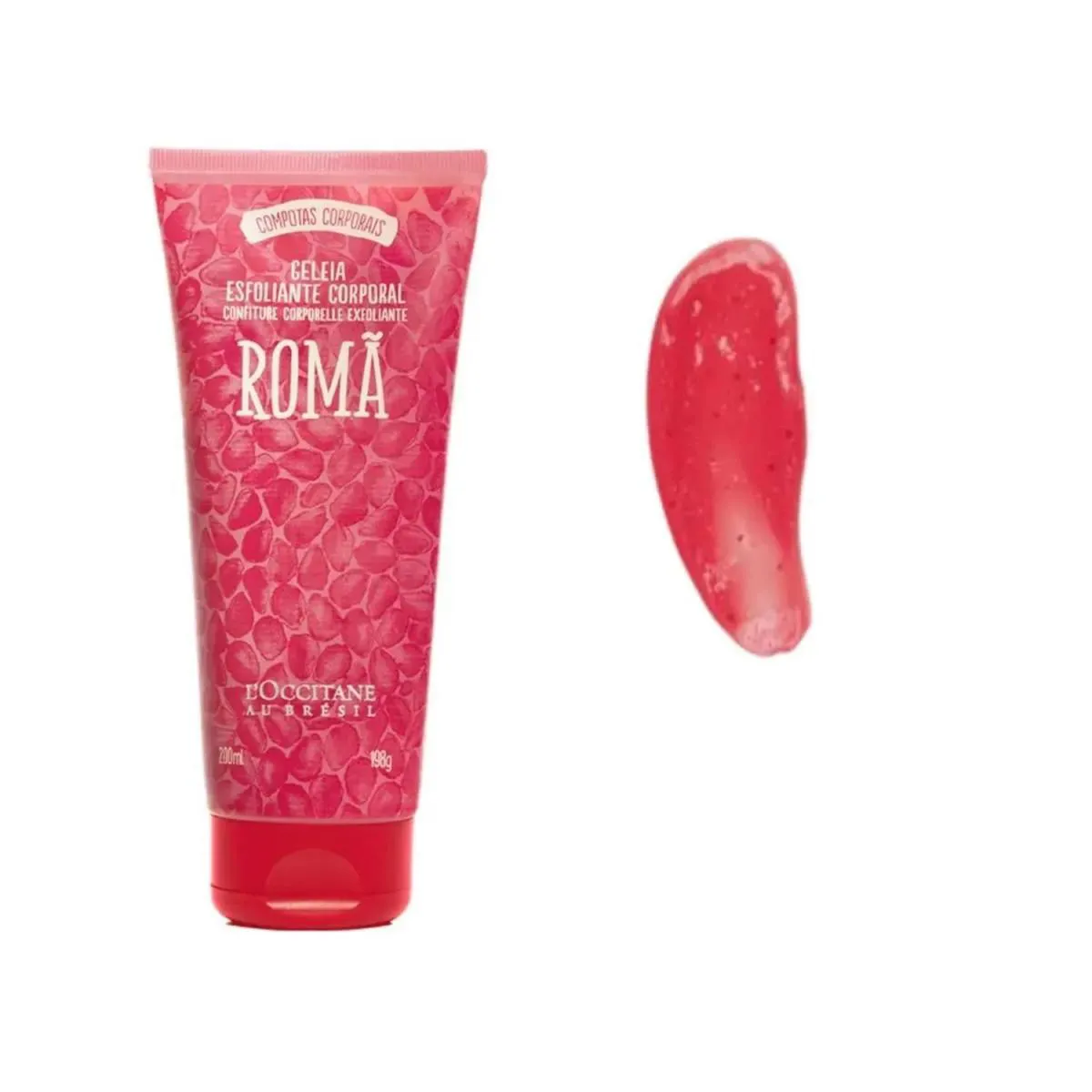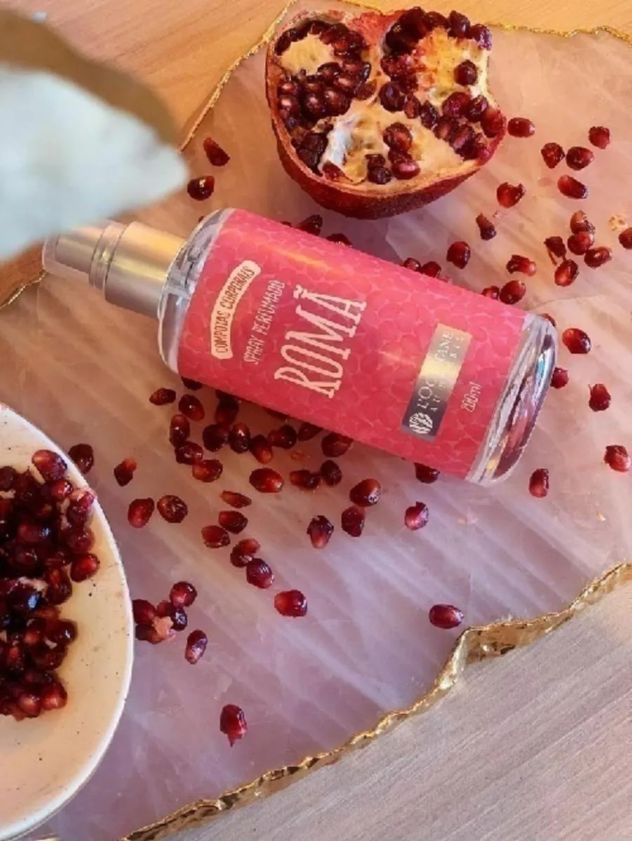 Esta composição contém Geleia esfoliante Romã, Gelatina de banho Romã e Geleia hidratante Desodorante Corporal Romã. Inspirada nos doces de compotas brasileiros, essa linha traz para sua rotina um vibrante acorde de frutas vermelhas, delicadamente envolvido por um corpo floral com notas de muget e e gerânio, envelopado por um fundo amadeirado e âmbar.
