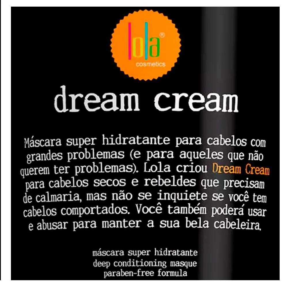 O Dream Cream da Lola é uma máscara super potente para cabelos secos e rebeldes. Ele recupera cabelos expostos a tinturas, agressões externas e agentes químicos variados.