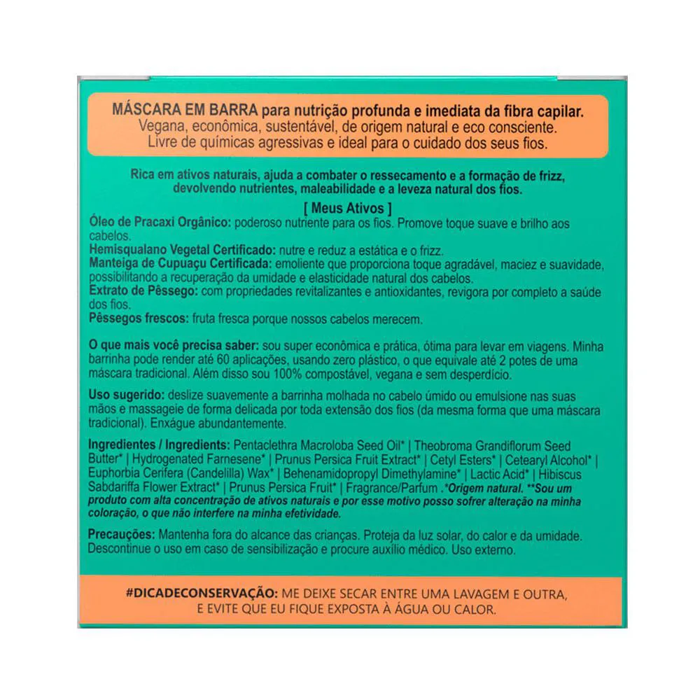 Sou super econômica e prática, ótima para levar em viagens. Minha barrinha pode render até 60 aplicações, usando zero plástico, o que equivale até 2 potes de uma máscara tradicional. Além disso sou 100% compostável, vegana e sem desperdício.