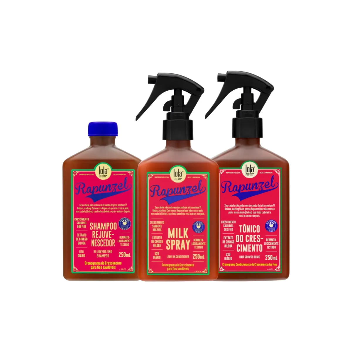 Kit Lola Rapunzel Shampoo Rejuvenescedor 250g + Milk Spray 250g +Tônico do Crescimento 250g