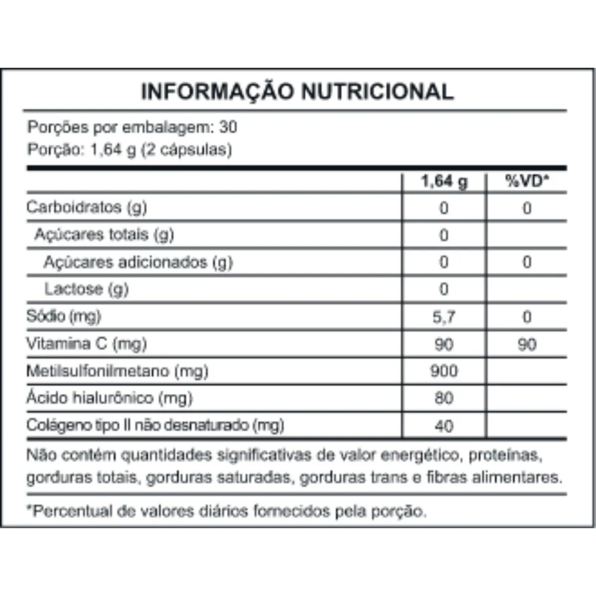 - Formulado com Colágeno Tipo 2 e Vitamina C.