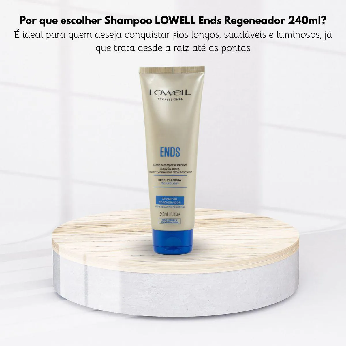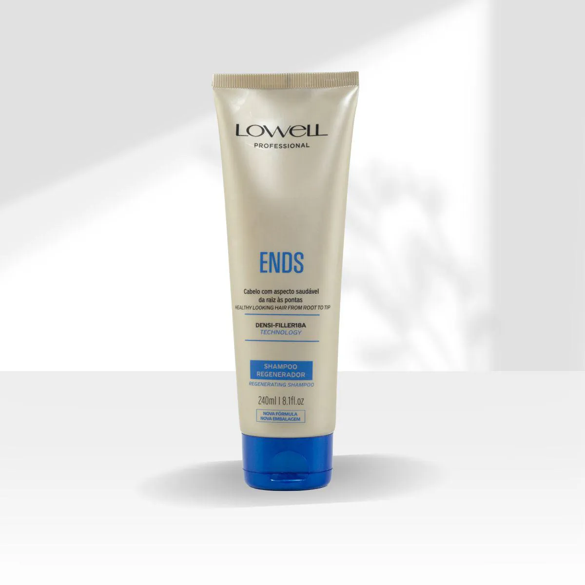 Lowell Ends Regenerador - shampoo 240ml Shampoo para cabelos danificados e quebradiços. Lowell Ends Regenerador é ideal para quem deseja conquistar fios longos, saudáveis e luminosos, já que trata desde a raiz até as pontas. O Shampoo Lowell Ends Regenerador chegou para revolucionar a sua rotina de cuidados capilares. Com fórmula poderosa, capaz de melhorar significativamente a resistência dos cabelos, o produto - que traz tecnologia Polar Rose + Filler 18 entre os destaques da composição -, higieniza de maneira gentil e eficiente ao mesmo tempo, previne o surgimento de pontas duplas e ainda combate a quebra. Uso diário. Conselho de Aplicação Com os cabelos previamente úmidos, aplique uma pequena quantidade de shampoo diretamente sobre a raiz dos fios. Em seguida, massageie o couro cabeludo de forma delicada e, quando notar a formação de espuma, enxágue completamente. Caso haja necessidade, repita o procedimento. Para obter resultados ainda mais efetivos, é importante utilizar todos os produtos de uma mesma linha. Resultado Cabelos muito mais longos, fortes e saudáveis, além de hidratados e livres das temidas pontas duplas.
