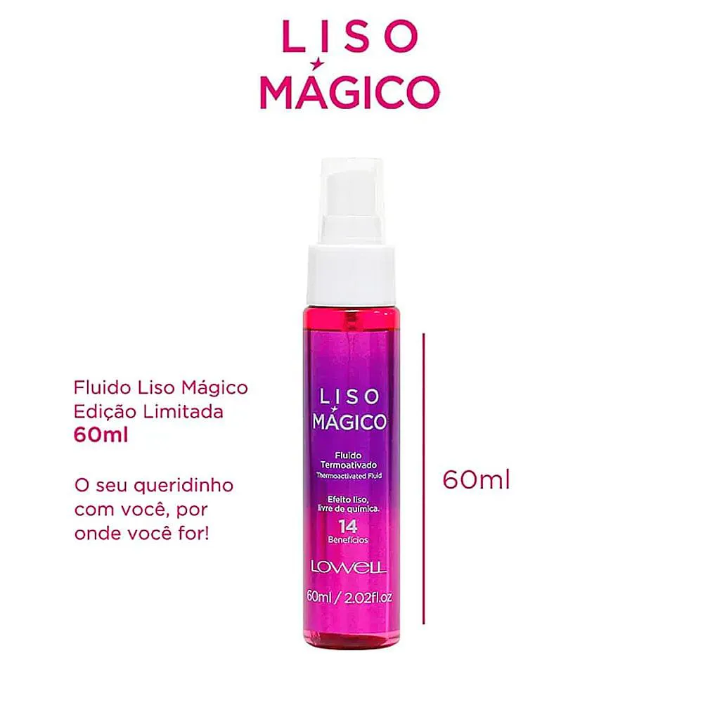 Escolha o Lowell Liso Mágico Fluido para transformar seus cabelos, proporcionando um liso natural, controle de frizz e proteção térmica. Com sua fórmula de fácil aplicação e resultados rápidos, seus fios ficam mais hidratados, alinhados e com um brilho radiante, pronto para qualquer ocasião.