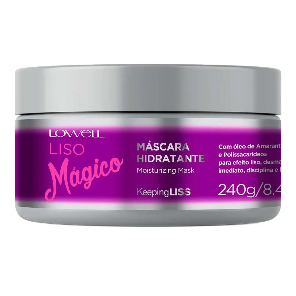 A Máscara Liso Mágico é enriquecida com óleo de Amaranto e Matrix de Algas vermelhas. Ideal para eliminar o frizz, proteger contra a umidade e auxiliar no desembaraço, além de oferecer efeito desmaio, disciplina e brilho.