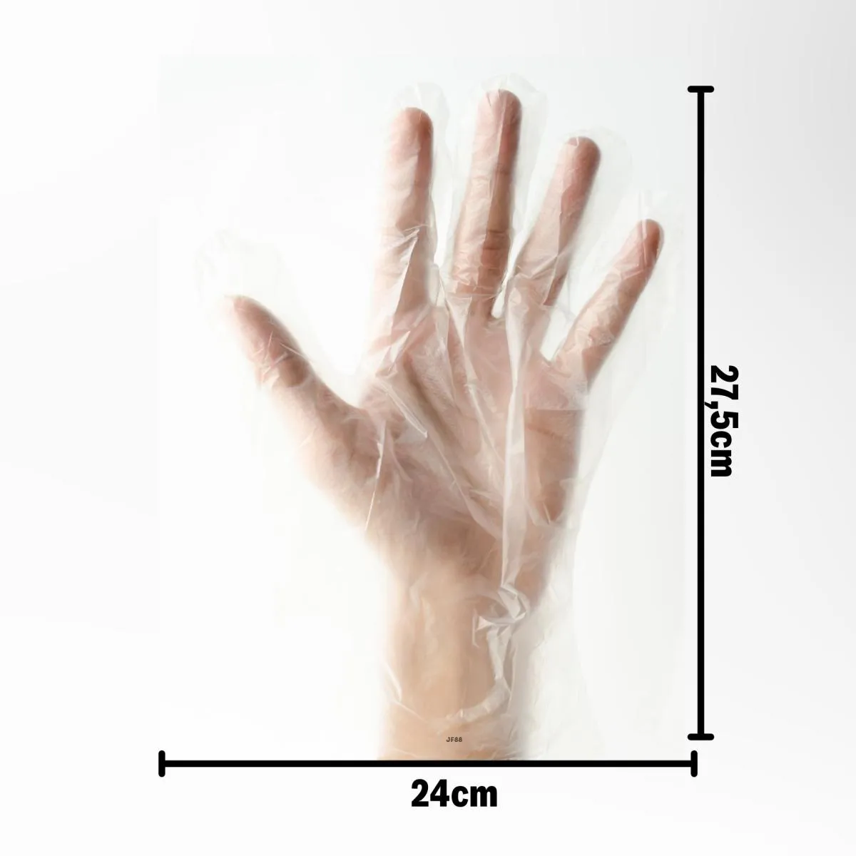 São luvas descartáveis fabricadas em polietileno, transparentes, com dimensões de 28cm de altura por 26cm de largura, projetadas para proteção e higiene das mãos em atividades de baixa intensidade. Servem para manter as mãos limpas, evitar contaminação e proteger o usuário durante tarefas que exigem manipulação cuidadosa, sendo ideais para uso único e rápido em situações que demandam higiene e barreira de proteção.