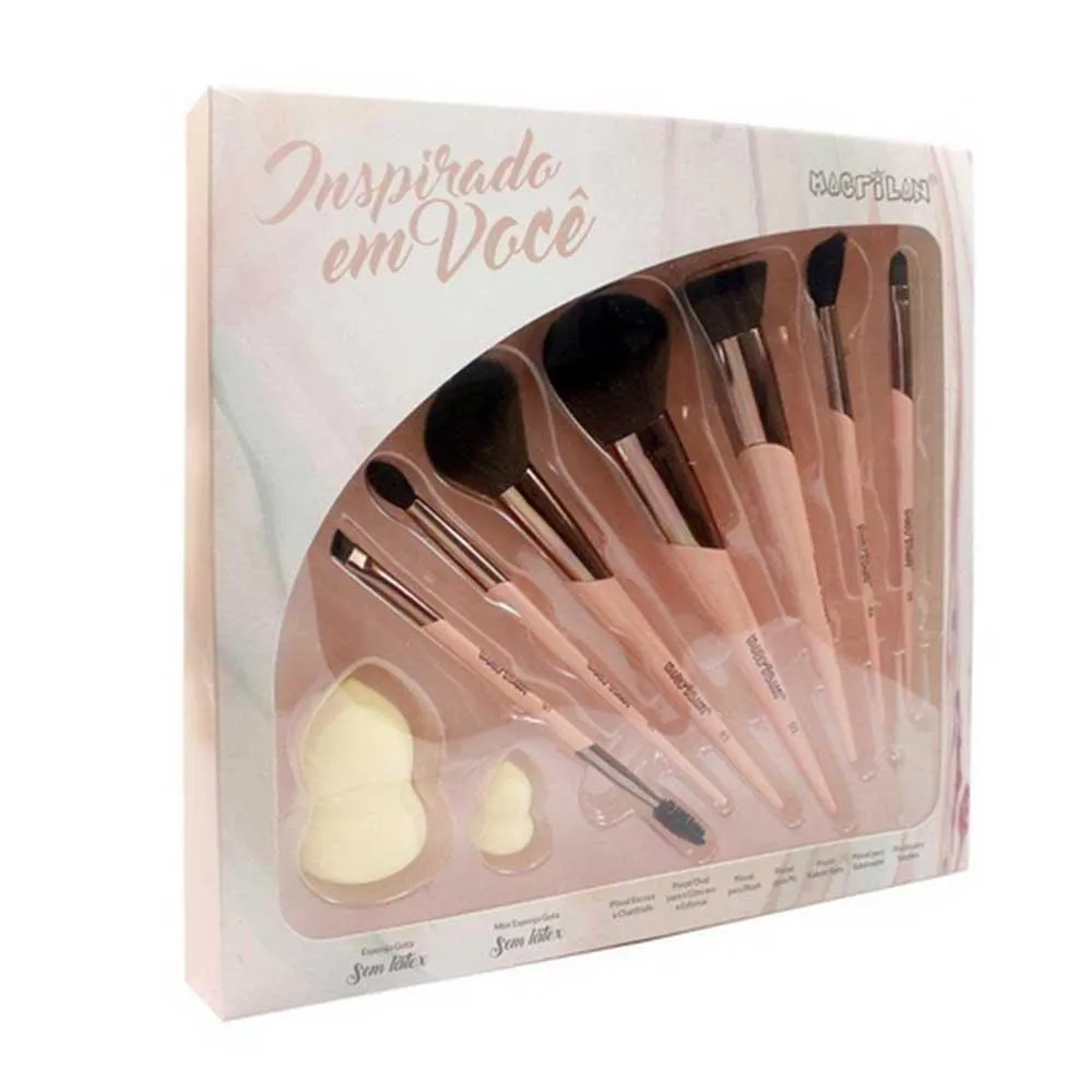 Macrilan Ed200 Inspirado em Você Kit - 7 Pincéis de Maquiagem + 2 Esponjas