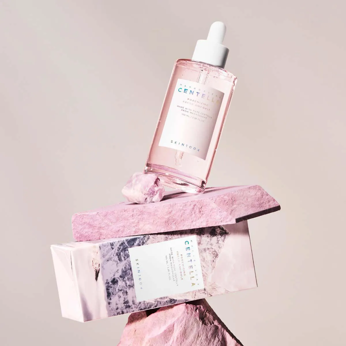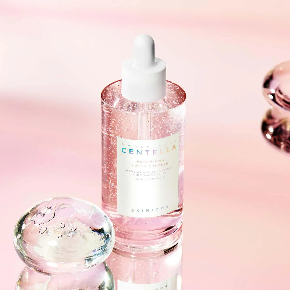 A Ampola Facial Centella Poremizing Skin1004 é um tratamento desenvolvido para minimizar a aparência dos poros, equilibrar a produção de sebo e promover hidratação profunda. Sua fórmula combina extrato de centella asiática de Madagascar, peptídeos, colágeno, elastina e sal rosa do Himalaia, oferecendo ação calmante, purificante e revitalizante. Com textura aquosa leve e baixo teor de óleo, proporciona frescor imediato sem deixar a pele pesada.