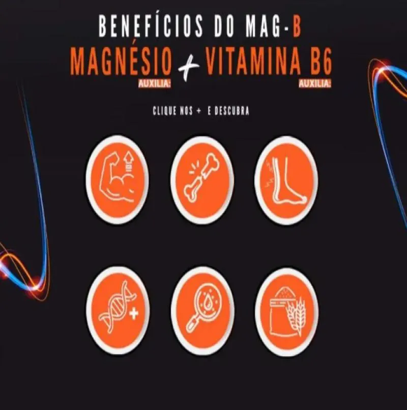 Mag-B é um suplemento alimentar em comprimidos revestidos, composto por magnésio e vitamina B6. Zero açúcares, zero valor energético. Esse suplemento cumpre a função de complementar a alimentação e ajudam a obter as vitaminas, minerais, proteínas e outros componentes indispensáveis para o correto funcionamento do organismo. Pode ser usado para prevenir deficiências alimentares causadas por alguma patologia ou circunstância específica, além de colaborar com a saúde e o bem-estar geral. Esse tipo de suplemento pode ser usado para prevenir deficiências alimentares causadas por alguma patologia ou circunstância específica, além de colaborar com a saúde e o bem-estar geral.