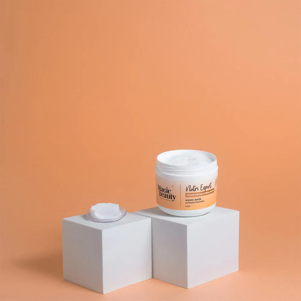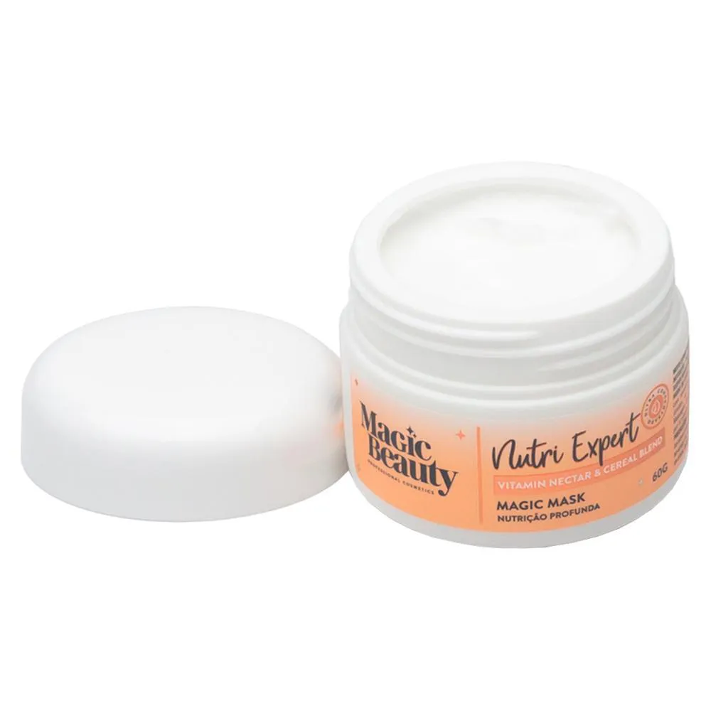 A Máscara Nutri Expert travel size de 60g, da Magic Beauty, é a sua mais nova máscara de nutrição capilar. Chega de receitas caseiras! A nossa Magic Mask promove a reposição de nutrientes essenciais para cabelos super ressecados, de dentro pra fora. Além disso, a Máscara capilar Nutri Expert traz em sua fórmula ativos que agem desde o interior da fibra.