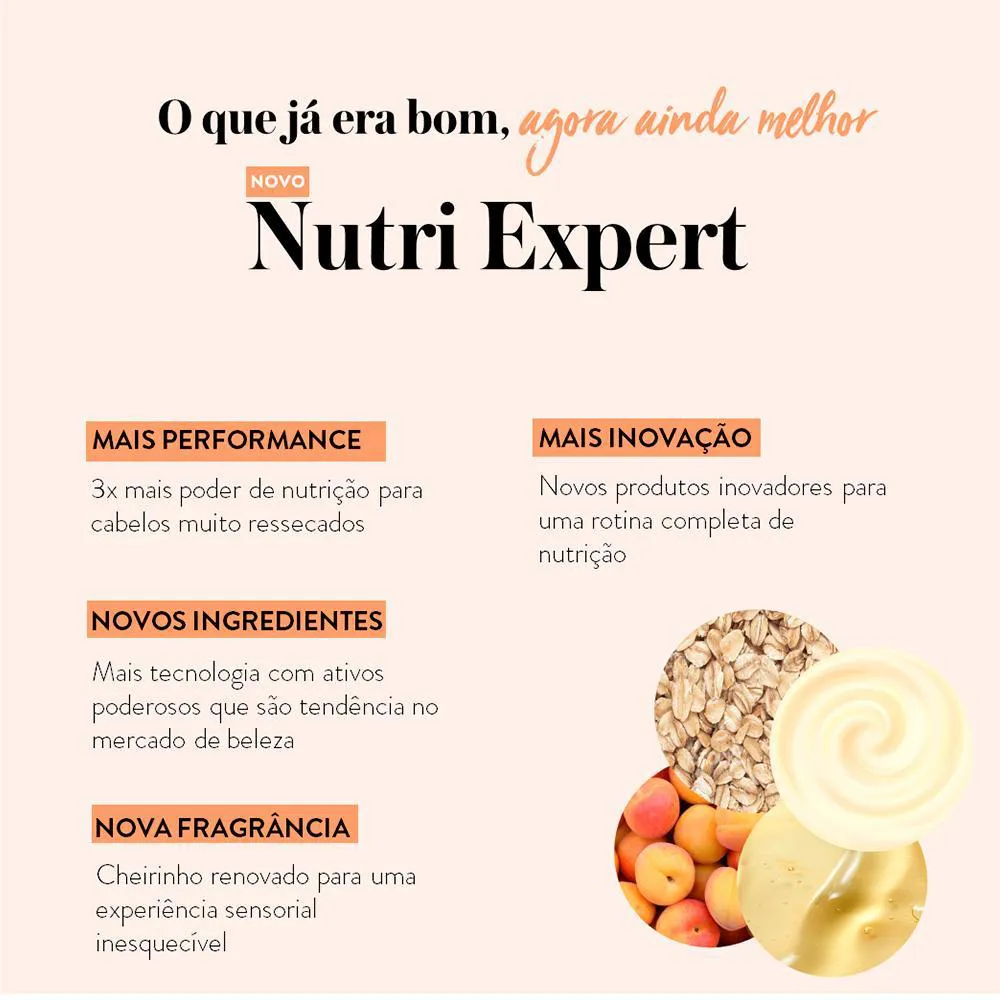 Nutri Expert é o tratamento que resulta em cabelos profundamente nutridos, macios, brilhantes e saudáveis. Efeito de tratamento profissional e com um antes e depois incrível! * RESULTADO: NutriçãoBrilhoMaciez * SUGESTÕES DE USO: 1.Após lavar os cabelos com shampoo, aplique nos cabelos úmidos, no comprimento e pontas;2.Massageie delicadamente;3.Deixe agir por 5 minutos e enxágue. * OBSERVAÇÕES: Imagem Meramente Ilustrativa * ITENS INCLUSOS: 1 Magic Beauty Vitamin Nectar & Ceral Blend Máscara de Nutrição 60 g