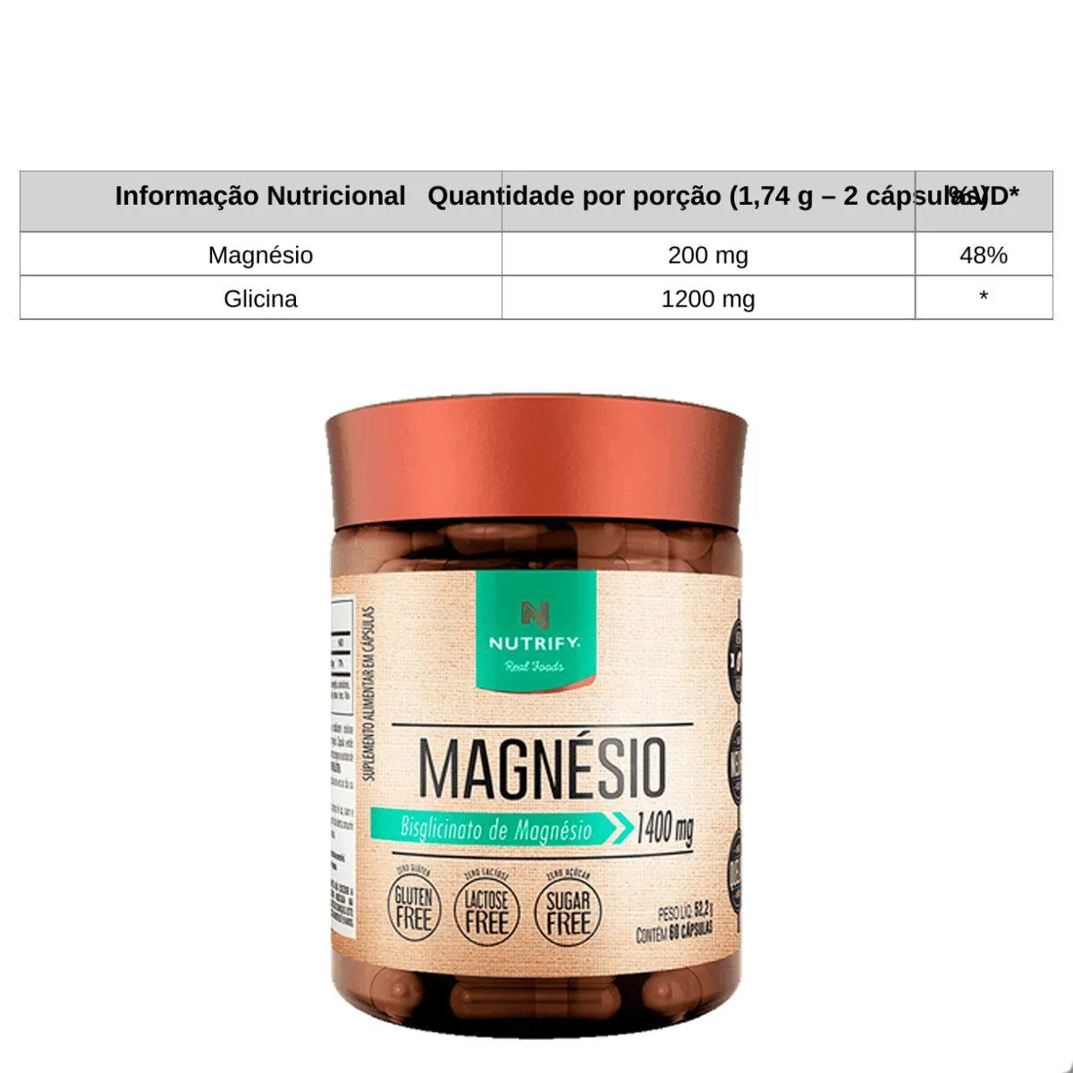 Magnésio 1400Mg Cognitivo 60 Capsulas Nutrify Natural