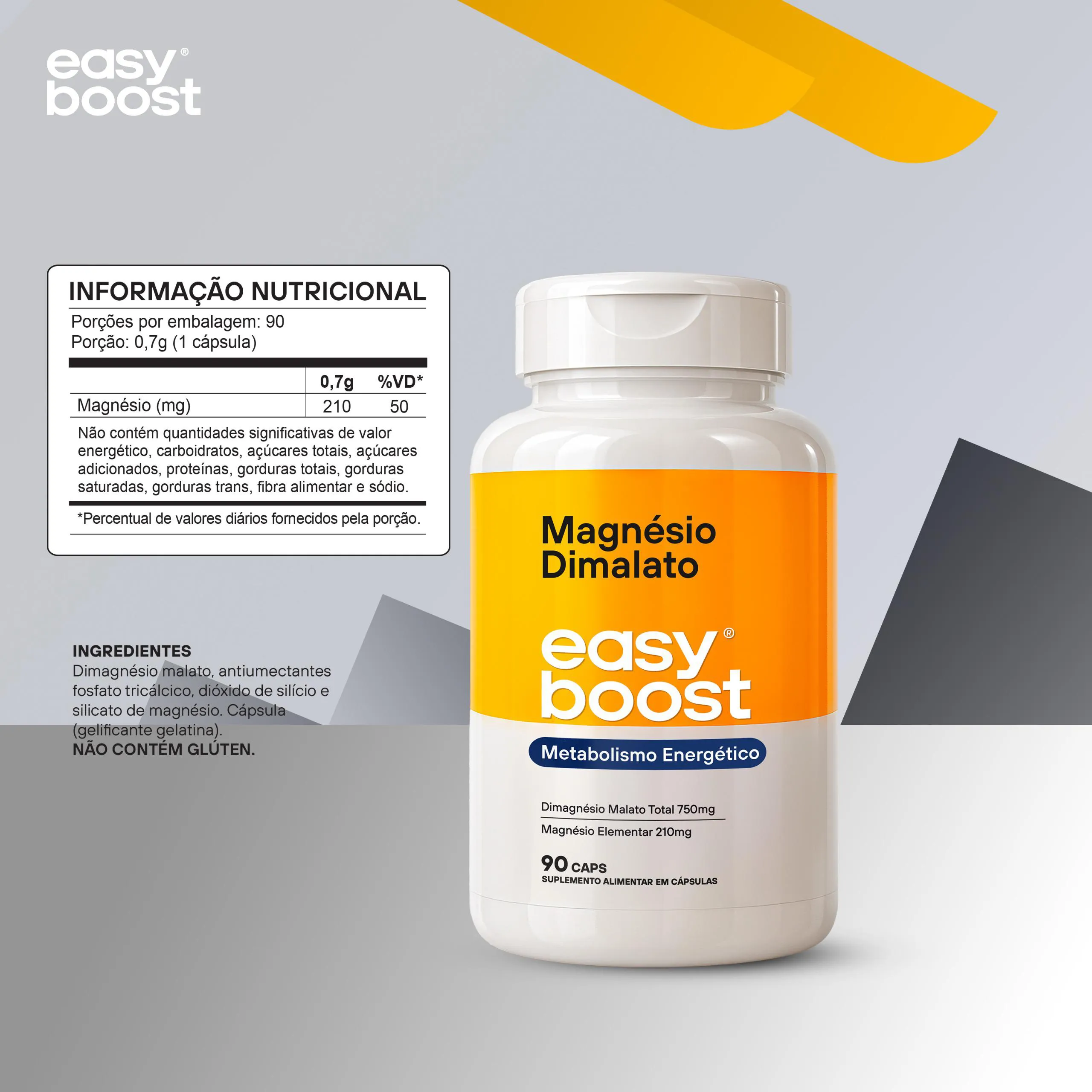 Magnésio Dimalato 100% Easy Boost 1500mg 180caps Kit 2x