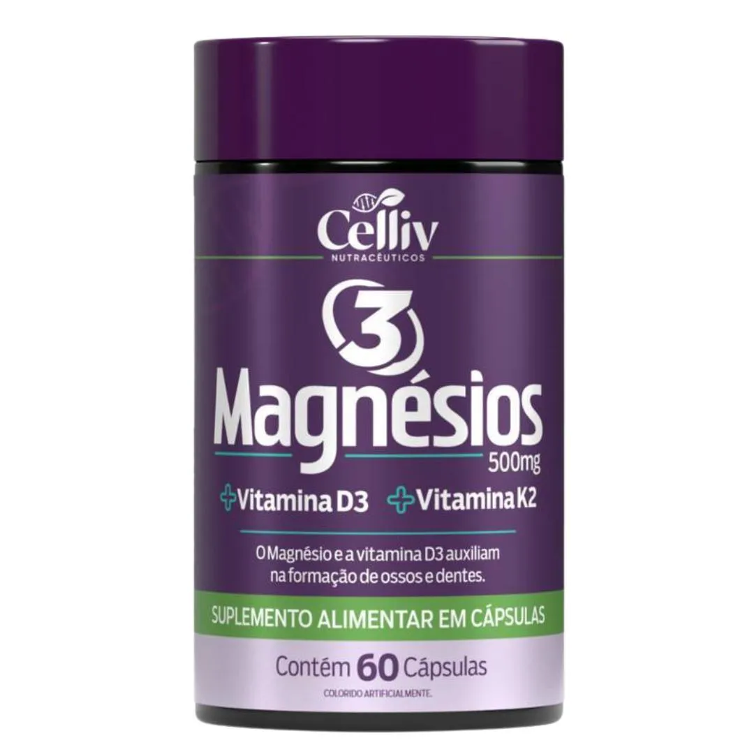 Suplemento Alimentar em capsulas com Magnésio Dimalato, Magnésio Quelato e Cloreto de Magnésio P.a. 60 capsulas de 550mg Celliv.