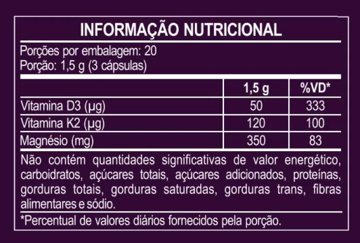 - Contém menaquinona-7 e colecalciferol.