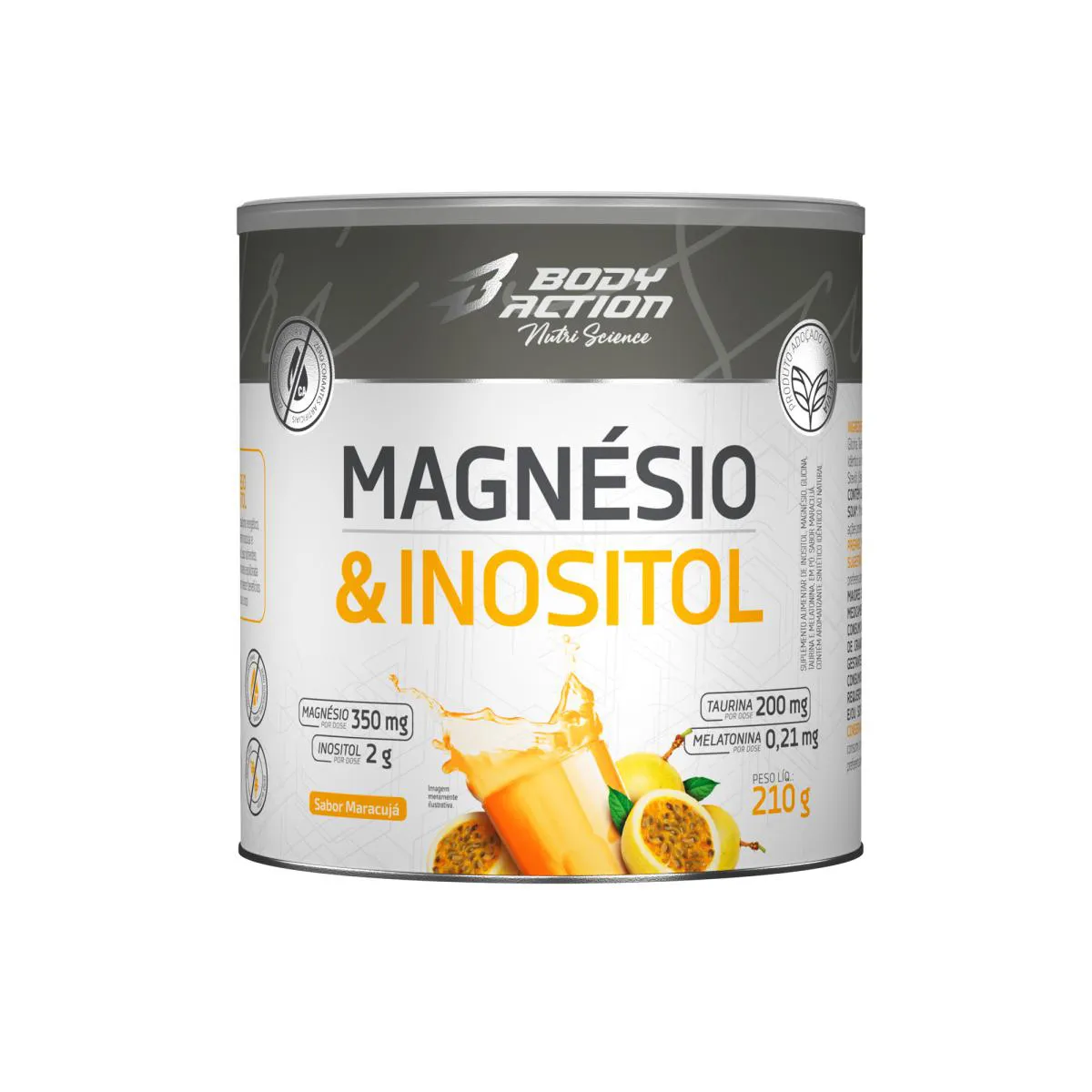 Magnésio & Inositol 210G Original Body Action - Sabor Maracujá 210 G