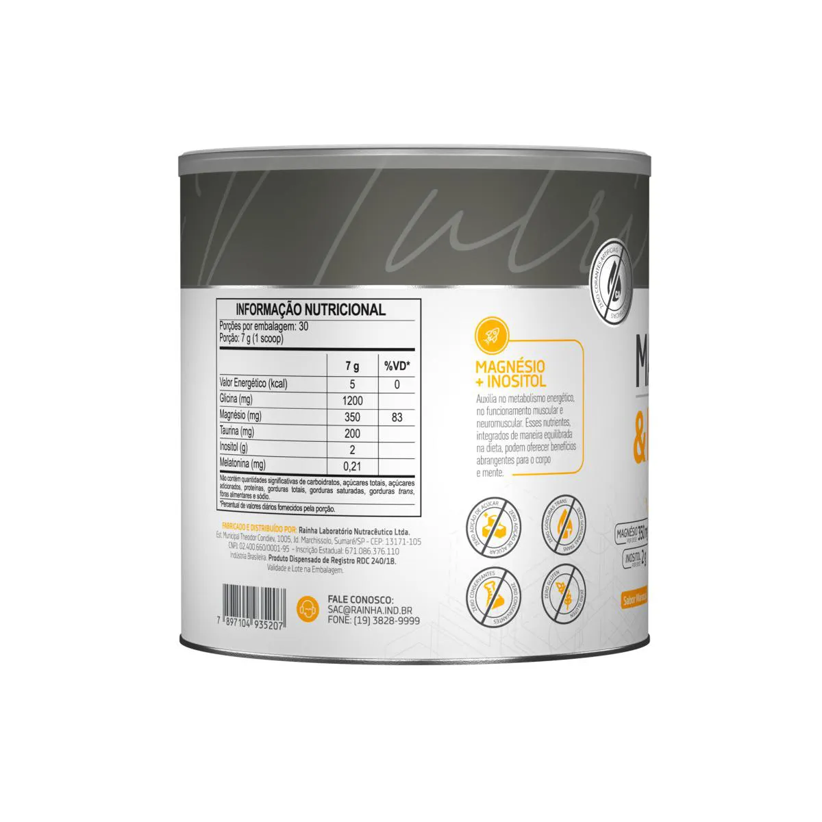 - Fórmula com magnésio, inositol e melatonina.