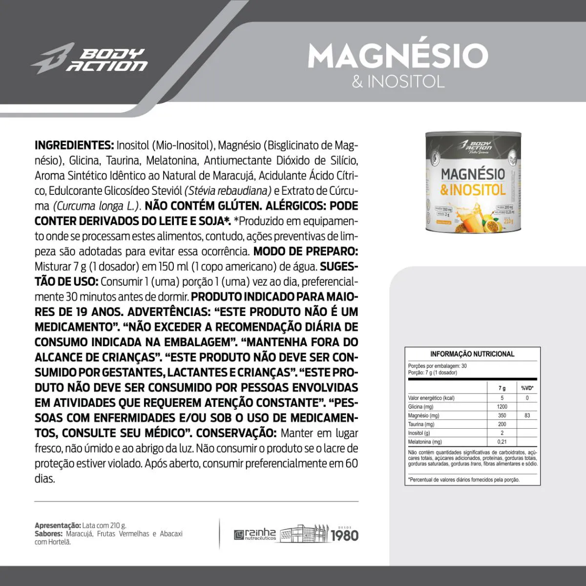 Ingredientes: Inositol (Mio-Inositol). Magnésio (Bisglicinato de Mag-nésio). Glicina, Taurina, Melatonina, Antiumectante Dióxido de Silicio, Aroma Sintético Idêntico ao Natural de Maracujá, Acidulante Ácido Citri-co. Edulcorante Glicosídeo Steviól (Stévia rebaudiana) e Extrato de Cúrcuma (Curcuma longa L.). NÃO CONTÉM GLÚTEN. ALÉRGICOS: PODE CONTER DERIVADOS DO LEITE E soja. Modo de preparo: Misturar 7g (1 dosador) em 150 ml (1 copo americano) de água.