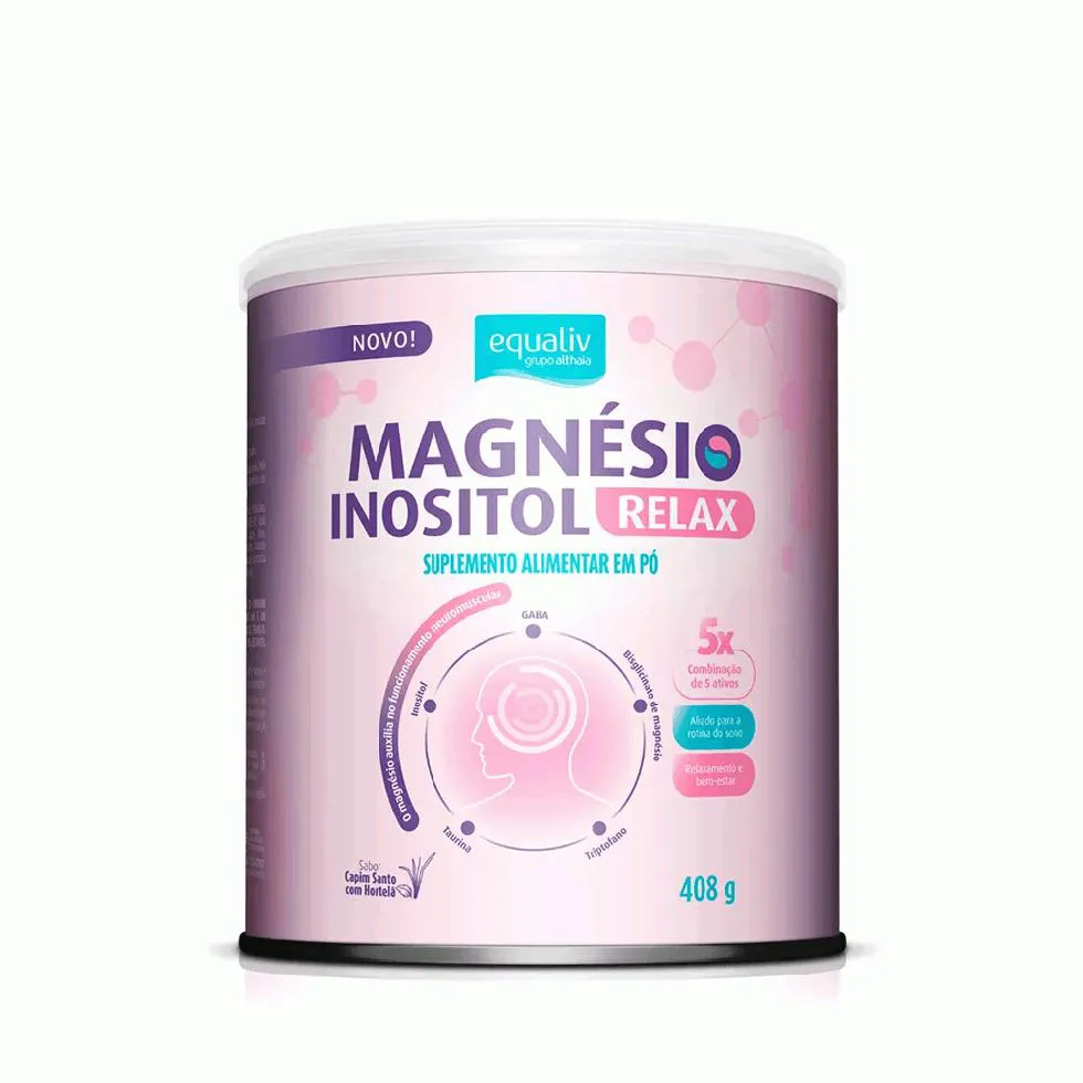 Suplemento nutricional avançado que combina 5 ativos com comprovação científica:GABARELAX™, bisciglinato de magnésio, triptofano, taurina e inositol. Combinação poderosa para regulação do sistema nervoso central, regulação do sono e humor. Benefícios: saúde cognitiva Regulação Intestinal Qualidade do sono Redução da Ansiedade Neuroproteção Regulação do Humor Perguntas Frequentes: Qual a diferença do Magnésio Inositol Relax para o Magnésio Inositol? Magnésio Inositol: Foco em equilíbrio hormonal, saúde mental e metabólica, como suporte a ansiedade, TPM, SOP e Regulação do sono e humor. Magnésio Inositol Relax: Foco em relaxamento profundo, suporte ao sono e redução de estresse intenso, com ação sinérgica de vários ativos calmantes. Ajuda no equilíbrio emocional e na saúde mental? Sim! A combinação de magnésio e inositol atua diretamente em neurotransmissores como GABA, serotonina e dopamina, promovendo redução da ansiedade leve; melhora do humor; aumento da clareza mental; Prevenção do esgotamento emocional; apoio à função cognitiva e ao foco. Gestantes, lactantes e crianças podem utilizar? A apresentação é contraindicada para gestantes, lactantes e crianças devido as concentrações de Inositol, GABA, Taurina e Triptofano, somente mediante recomendação e acompanhamento médico.