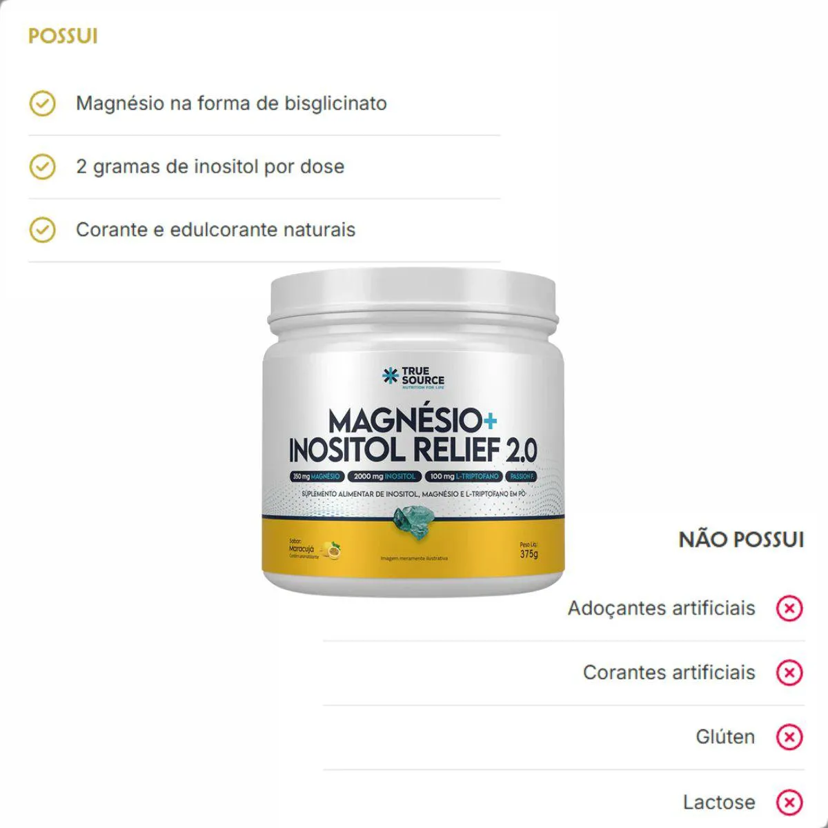 Magnésio + Inositol Relief 3.0 350G True Source Maracujá