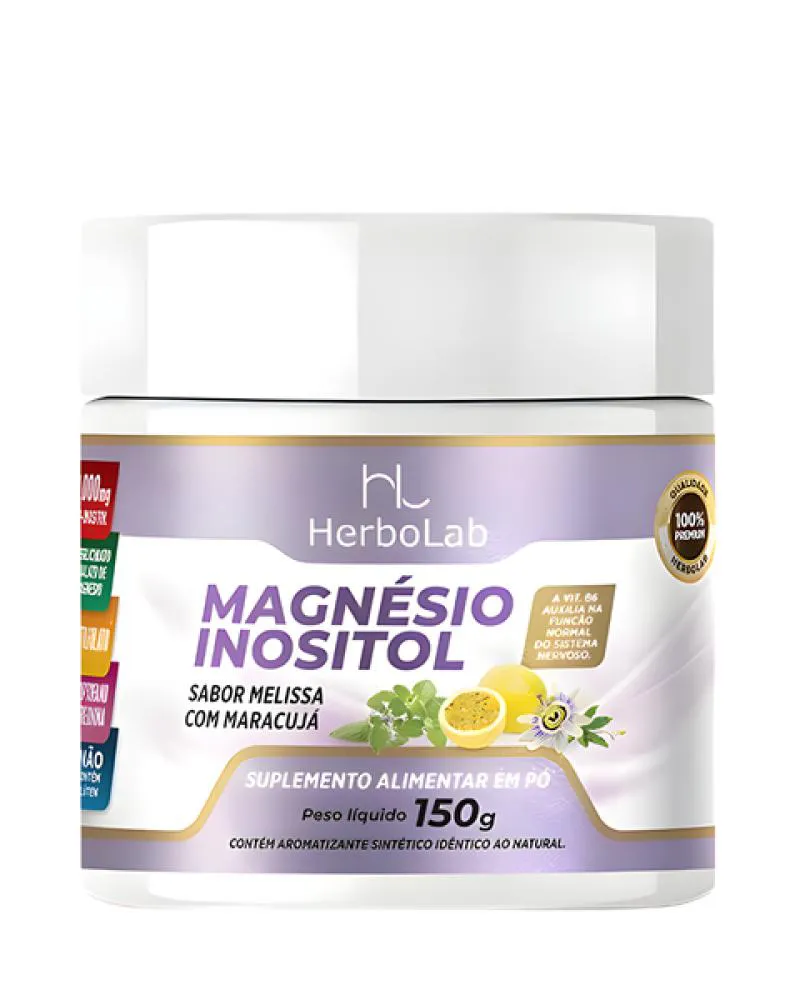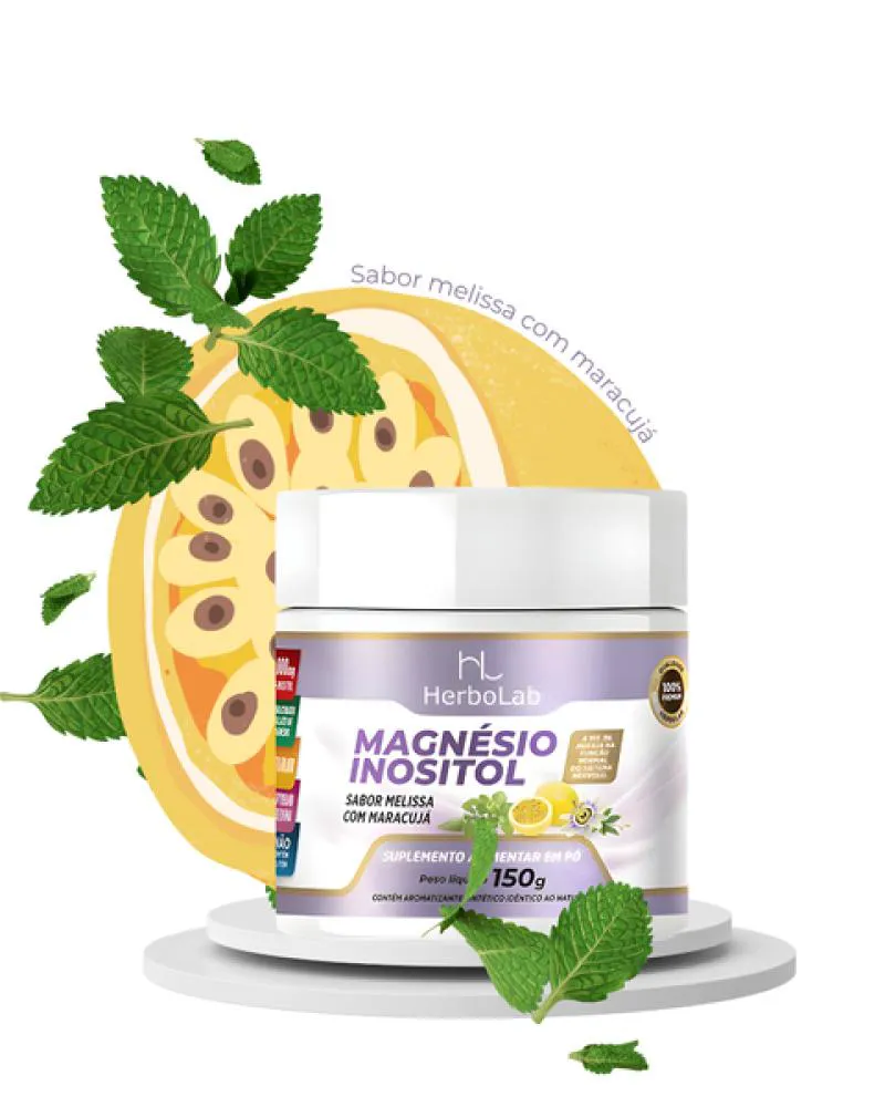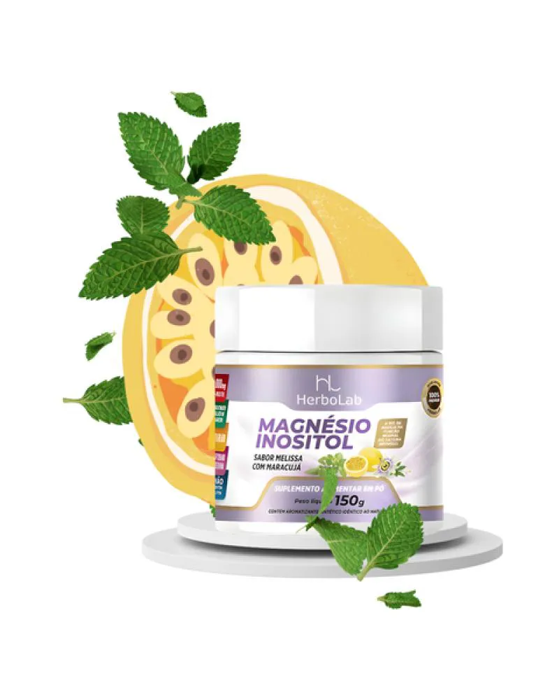 Magnésio Inositol sem Glúten em Pó sabor Maracujá 150g HerboLab -