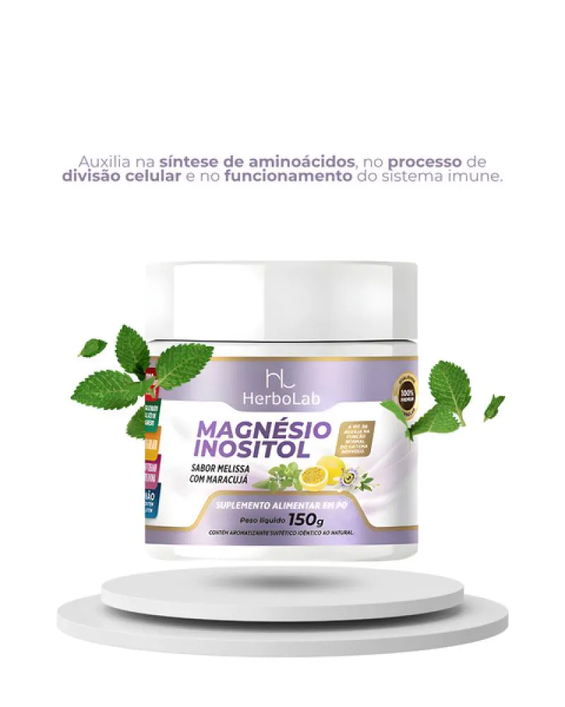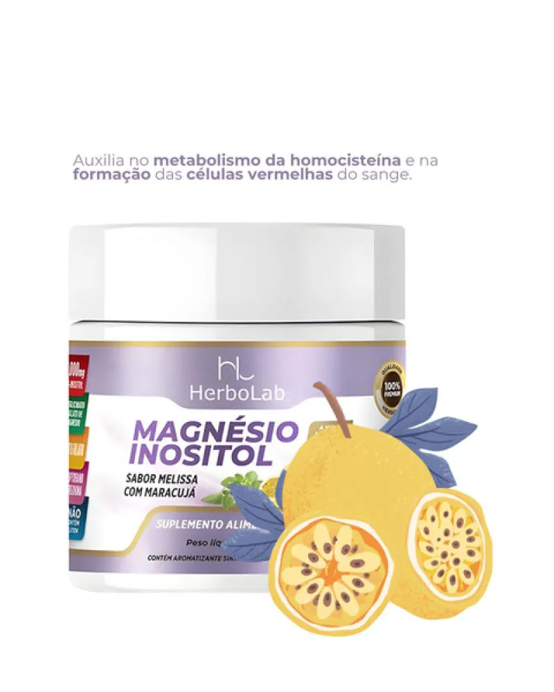 Magnésio Inositol sem Glúten em Pó Sabor Maracujá 150G Herbolab
