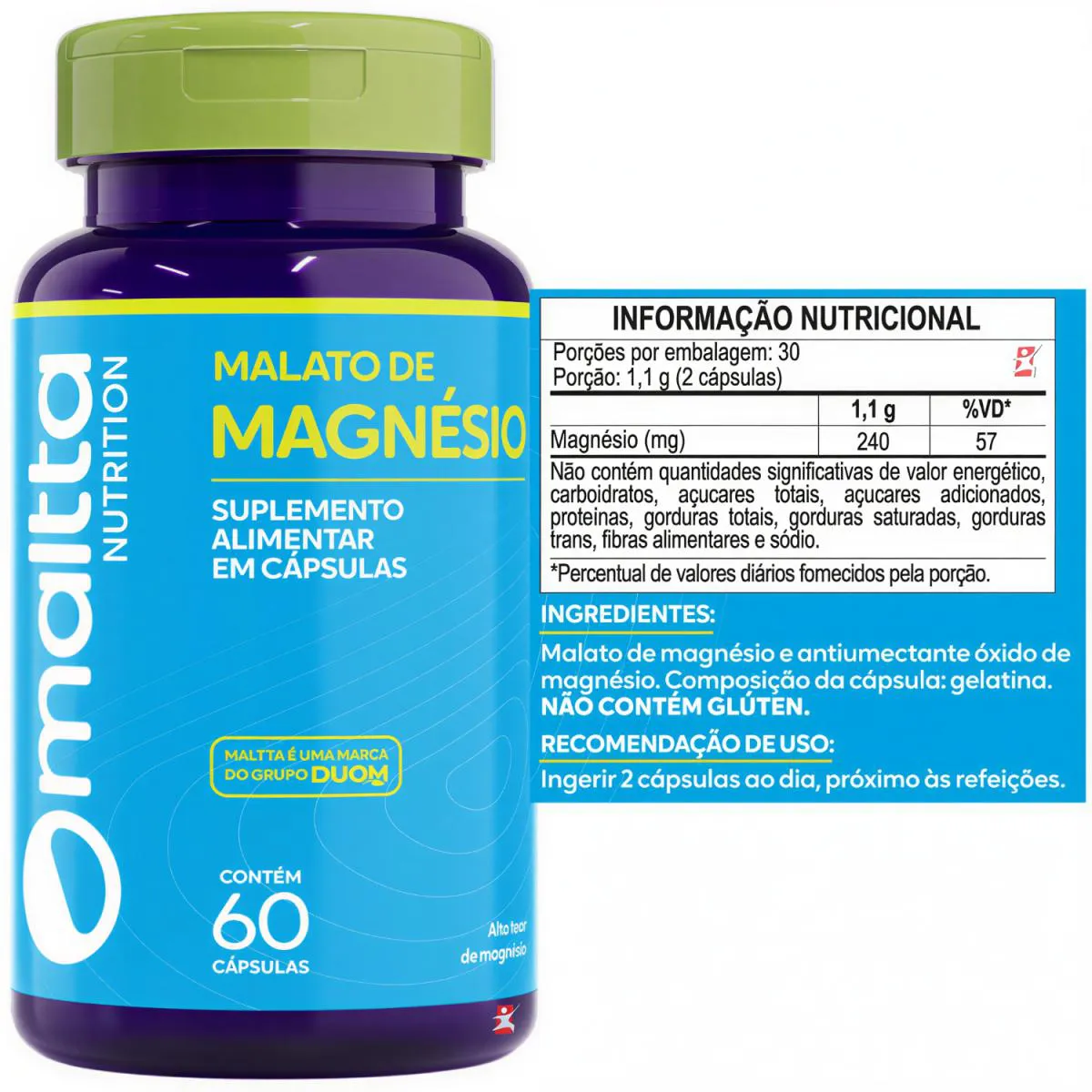 Magnésio Malato Concentrado Super Mineral 60 Cápsulas - Maltta Nutrition