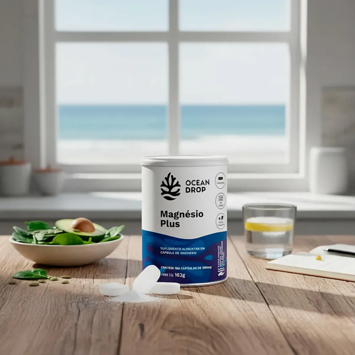 Magnésio Plus Ocean Drop - 180 cápsulas de 900mg cada + porta capsulas Composição: