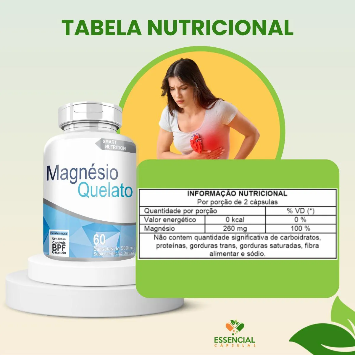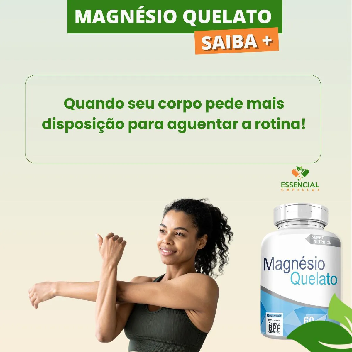 O Magnésio Quelato é um suplemento alimentar natural composto por bisglicinato de magnésio, apresentado em cápsulas. Trata-se de uma forma de magnésio com alta biodisponibilidade, desenvolvido para auxiliar no equilíbrio muscular e corporal de pessoas saudáveis, complementando a alimentação diária.