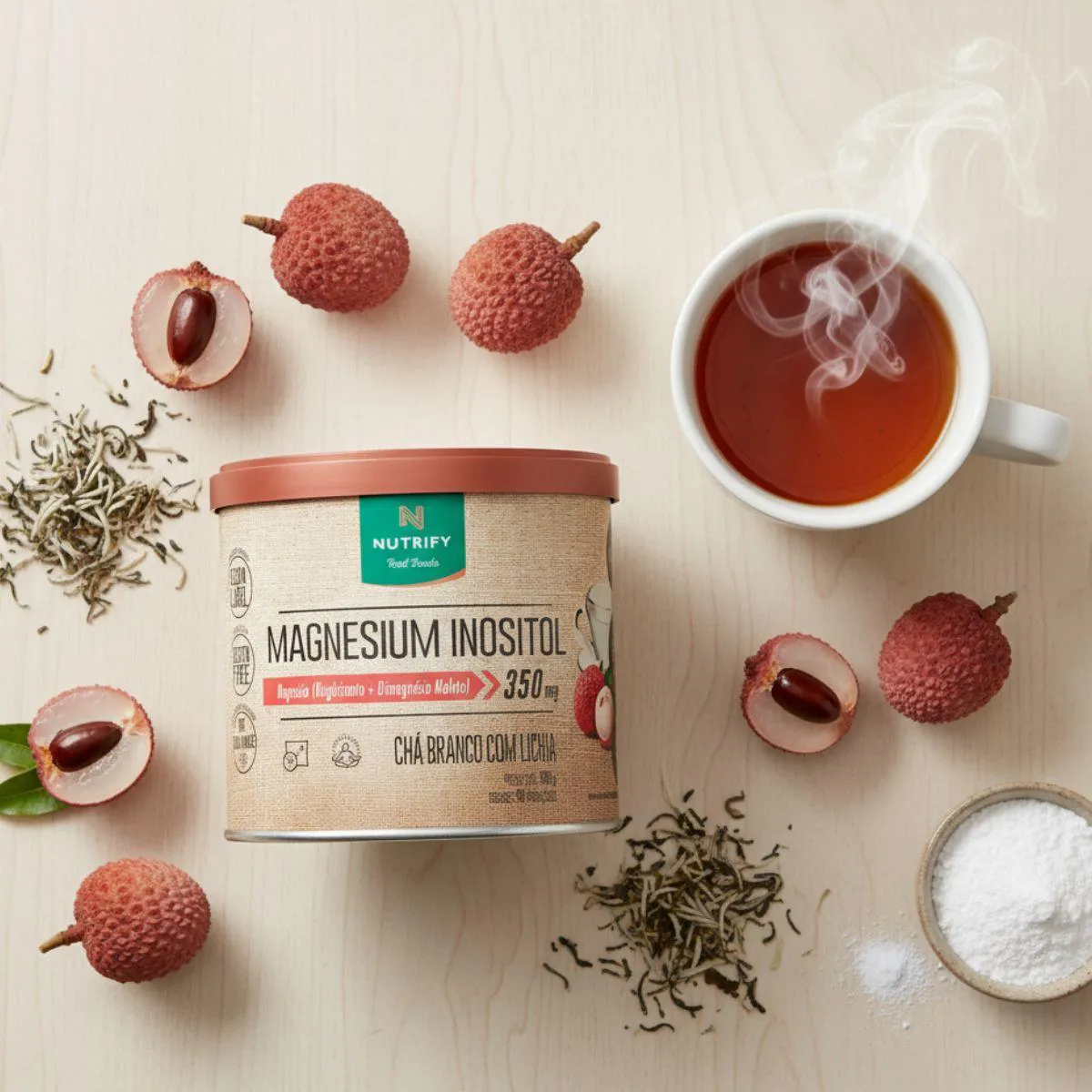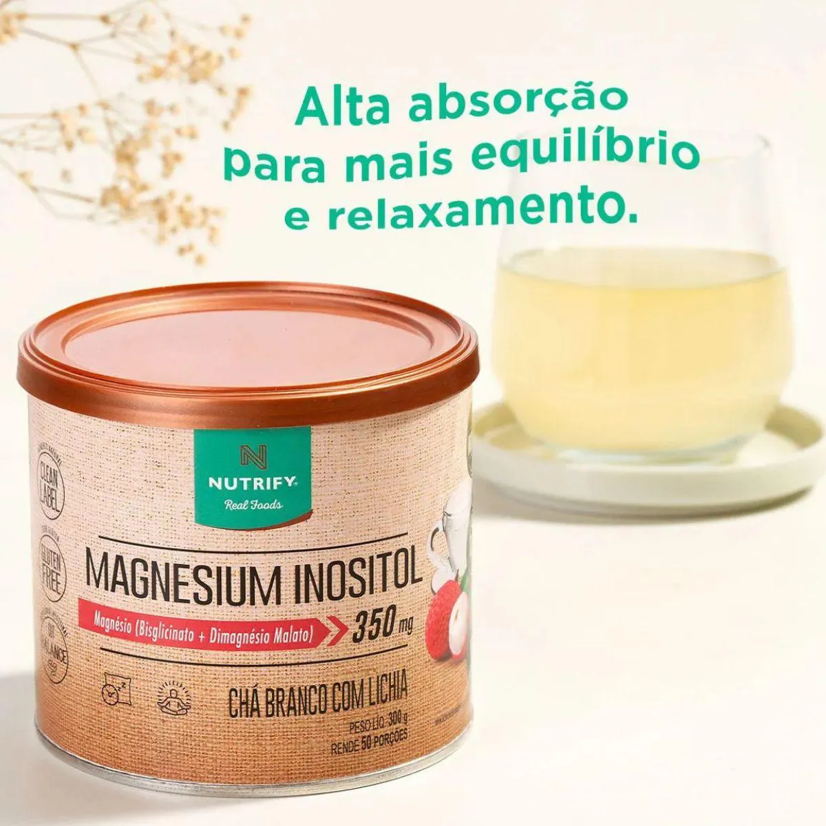 Magnesium Inositol 350Mg Dimalato e Bisglicinato 300G Nutrify CHÁ Branco E Lichia