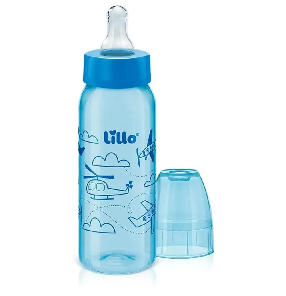 Mamadeira Divertida 240Ml Bico Redondo Azul Lillo