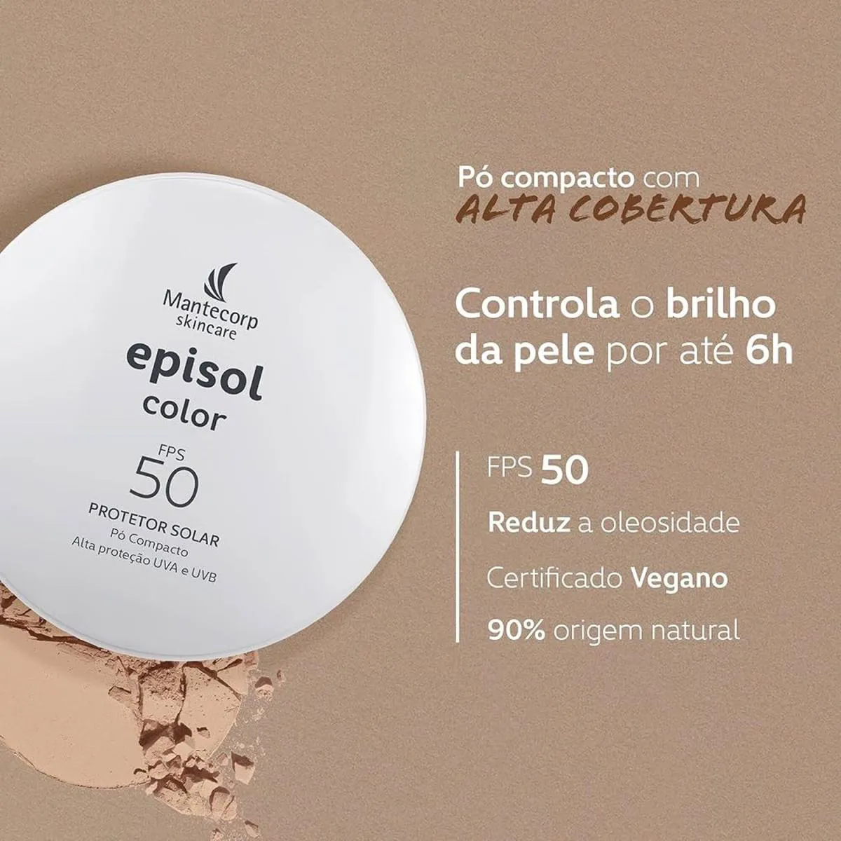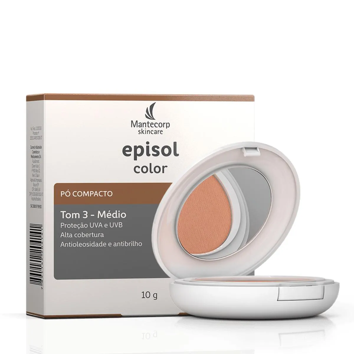 O Episol Color FPS50 Pó Compacto da Mantecorp Skincare une proteção solar de alta performance a um acabamento natural com cor. Desenvolvido para peles brasileiras, uniformiza o tom, reduz o brilho excessivo e ajuda a prevenir sinais do envelhecimento causados pelo sol. Características:- FPS 50 com proteção contra raios UVA, UVB e luz visível.