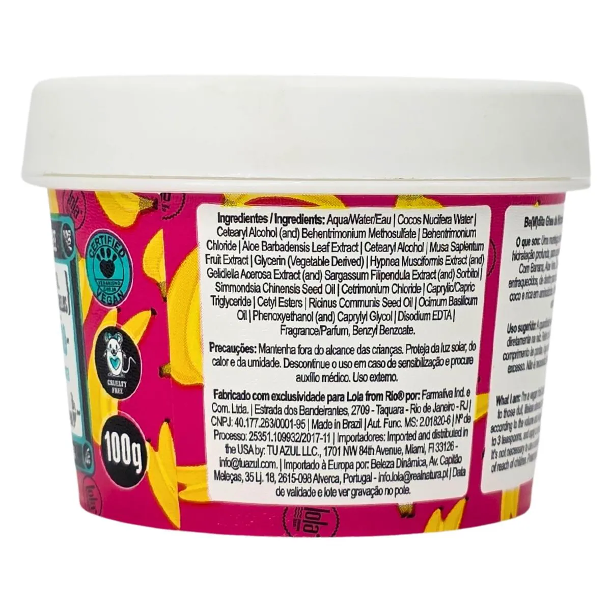 Modo de usar: A quantidade varia de acordo com o volume e o comprimento dos seus cabelos, mas evite aplicar diretamente na raiz. Retire de 2 a 3 colheres de chá e aplique nas mãos. Emulsione para espalhar e aplique do comprimento às pontas, logo após o shampoo Lola de sua preferência. Deixe agir de 3 a 5 minutos. Retire todo o excesso. Não é necessário finalizar com condicionador. Use semanalmente ou sempre que se fizer necessário o processo de hidratação dos fios.