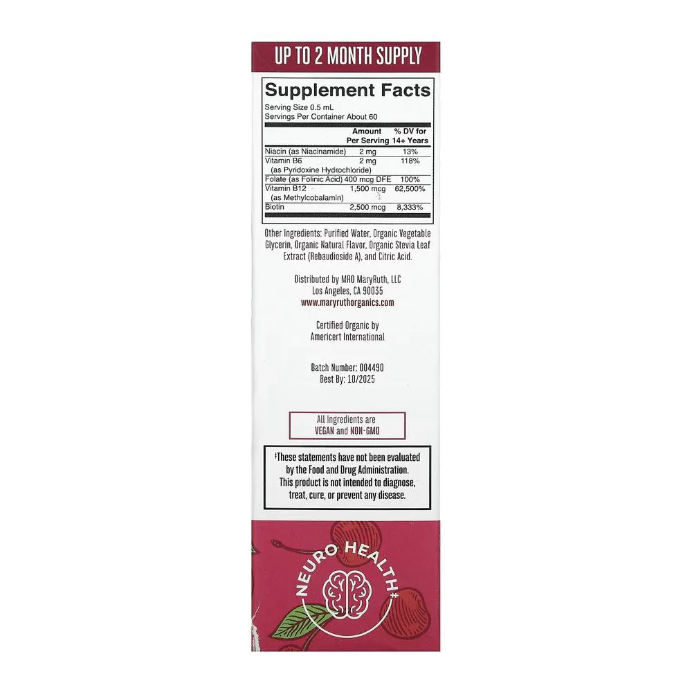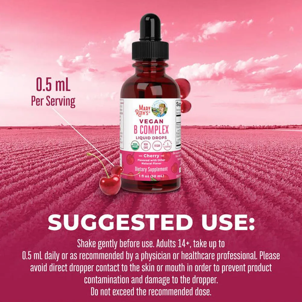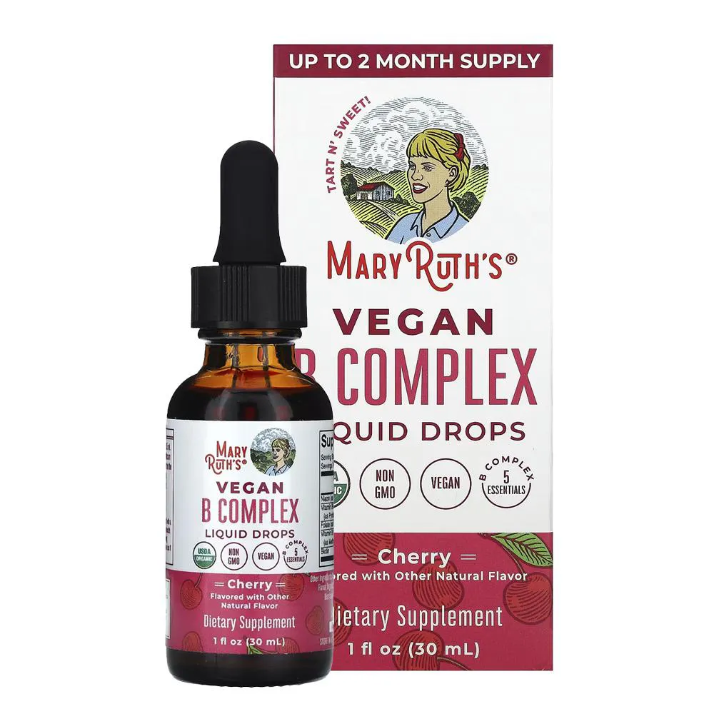 1. MaryRuths Complexo de Vitamina B em Gotas Orgânico, sabor cereja, frasco 1 oz (30 ml); formato líquido prático para complementar sua rotina alimentar com vitaminas do complexo B.