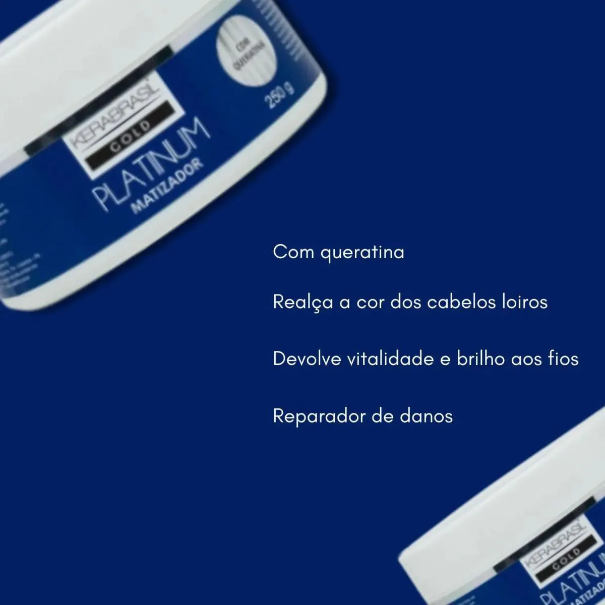 Máscara Platinum Matizador Gold 250g – Kerabrasil é um tratamento capilar desenvolvido para neutralizar tons amarelados ou alaranjados de cabelos loiros, grisalhos ou descoloridos. Sua fórmula contém pigmentos matizadores que ajudam a realçar o tom platinado, proporcionando mais brilho e maciez aos fios.