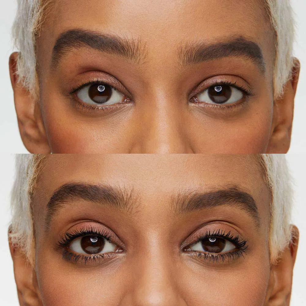 As fibras da escova em formato grande e esférico alcançam até mesmo os menores cílios, envolvendo-os sem que empelotem ou pesem.