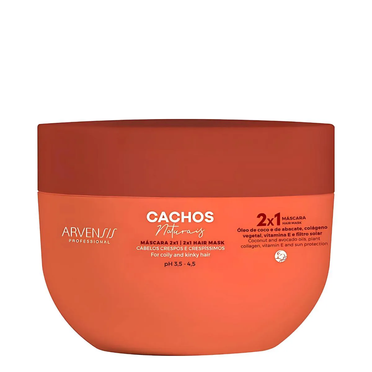 máscara 2x1 Arvensis, máscara cachos naturais, máscara hidratação e finalização, máscara multifuncional para cachos, máscara óleo de coco e abacate, máscara para cachos definidos, tratamento para cabelos cacheados.