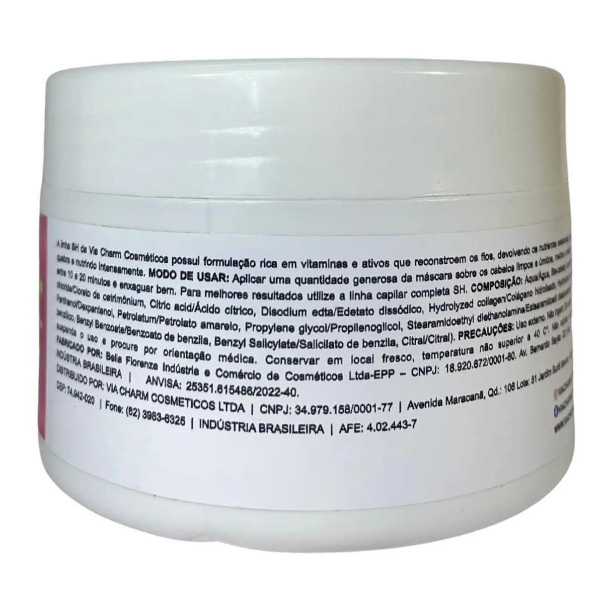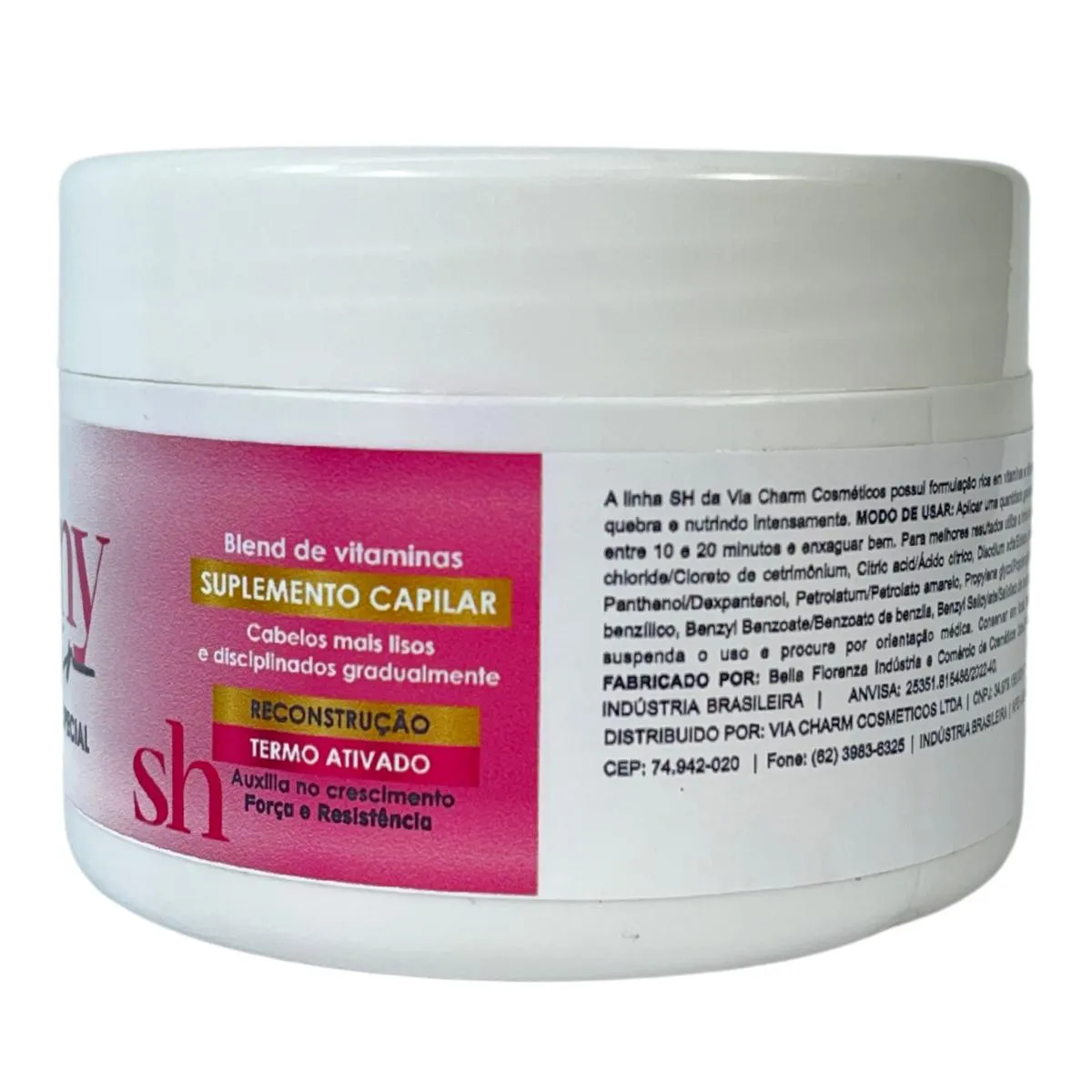 Modo de Uso: Aplicar uma quantidade generosa da máscara sobre os cabelos limpos e úmidos, mecha a mecha, começando pelas pontas massageando suavemente os fios até chegar à raiz. Deixe agir entre 10 a 20 minutos e enxaguar bem. Para melhores resultados utilize a linha capilar completa SH.